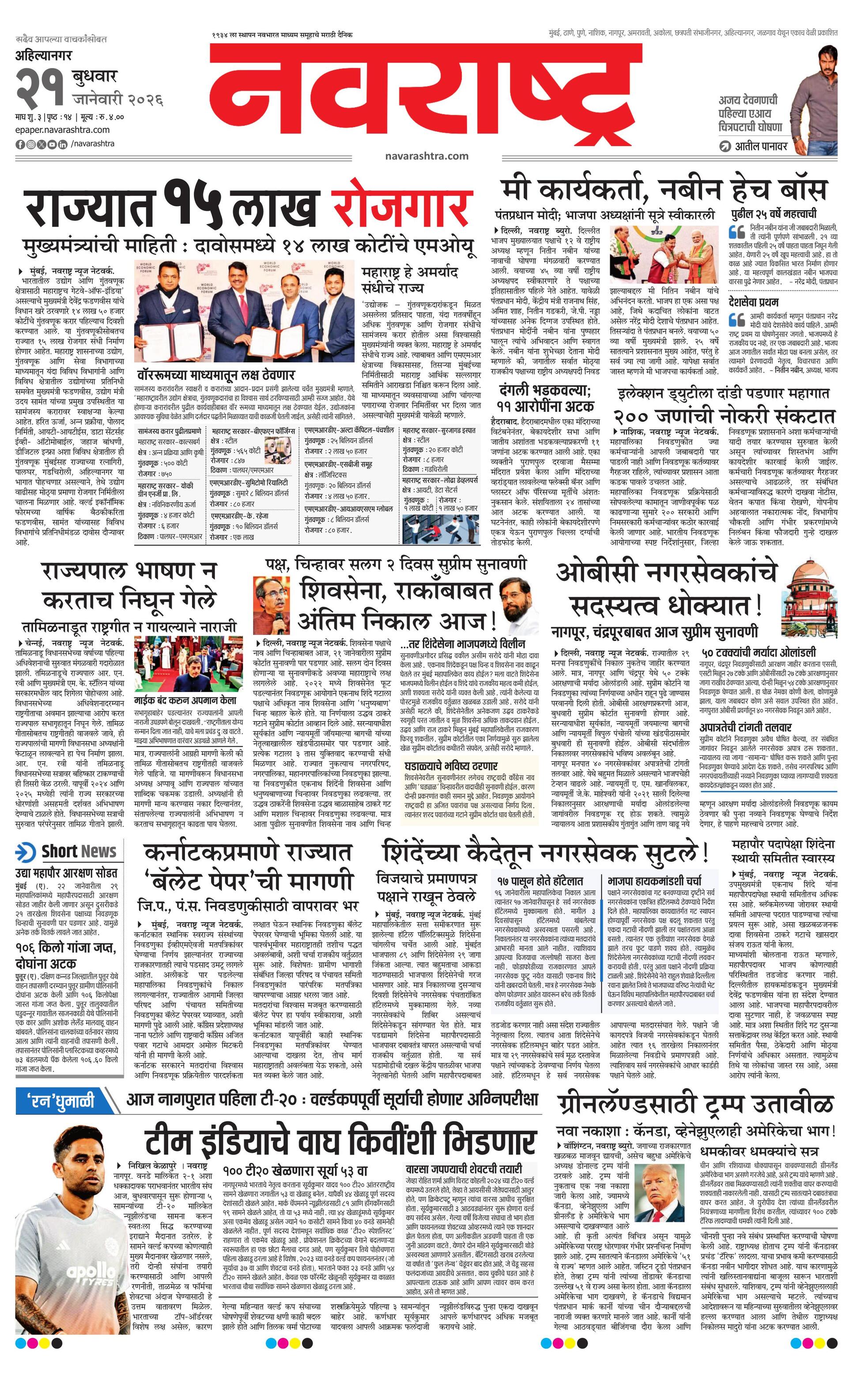 Ahilyanagarmain E-paper | 2026-01-21 | Page 1 | Navarashtra