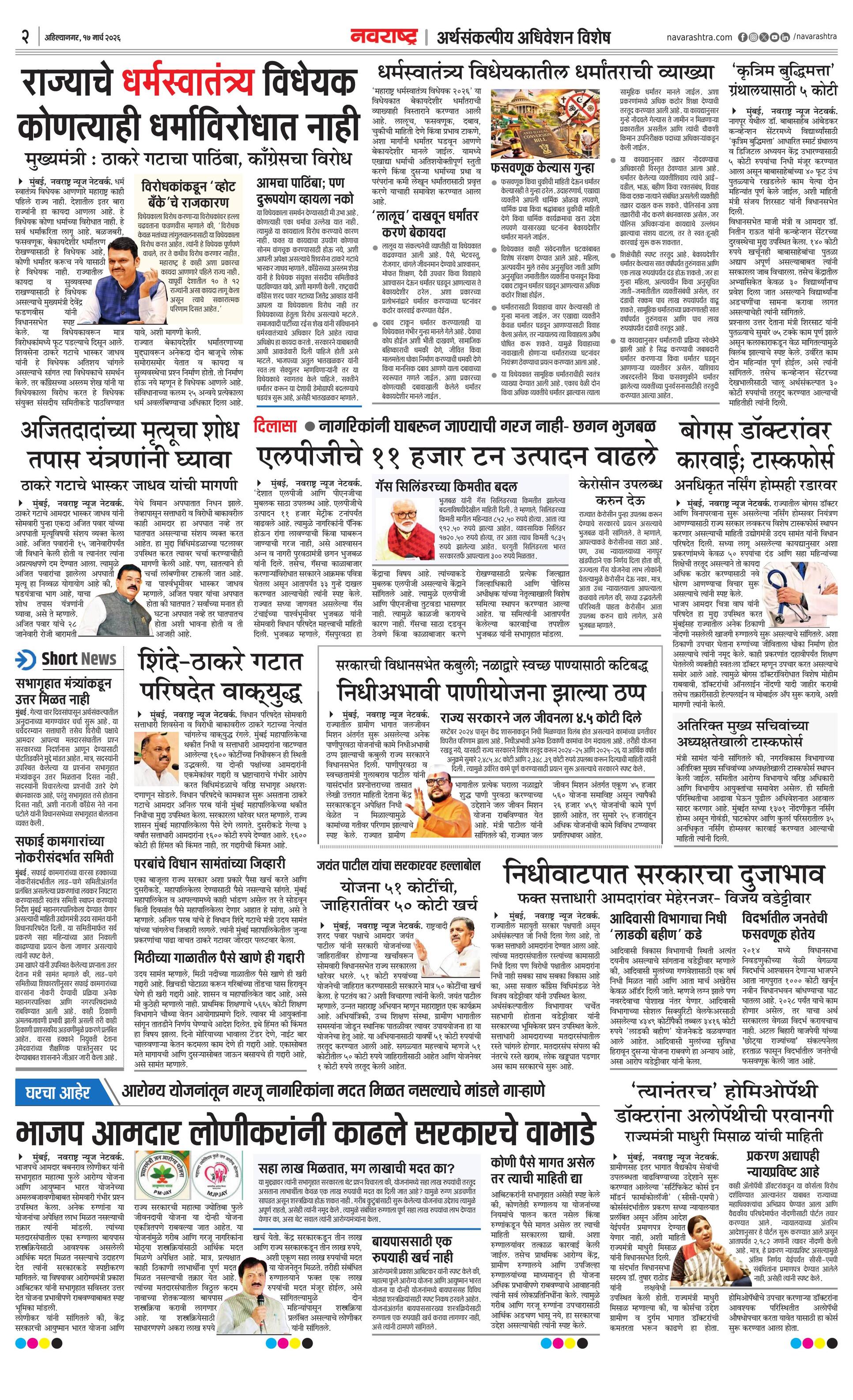 Ahilyanagarmain E-paper | 2026-03-17 | Page 1 | Navarashtra