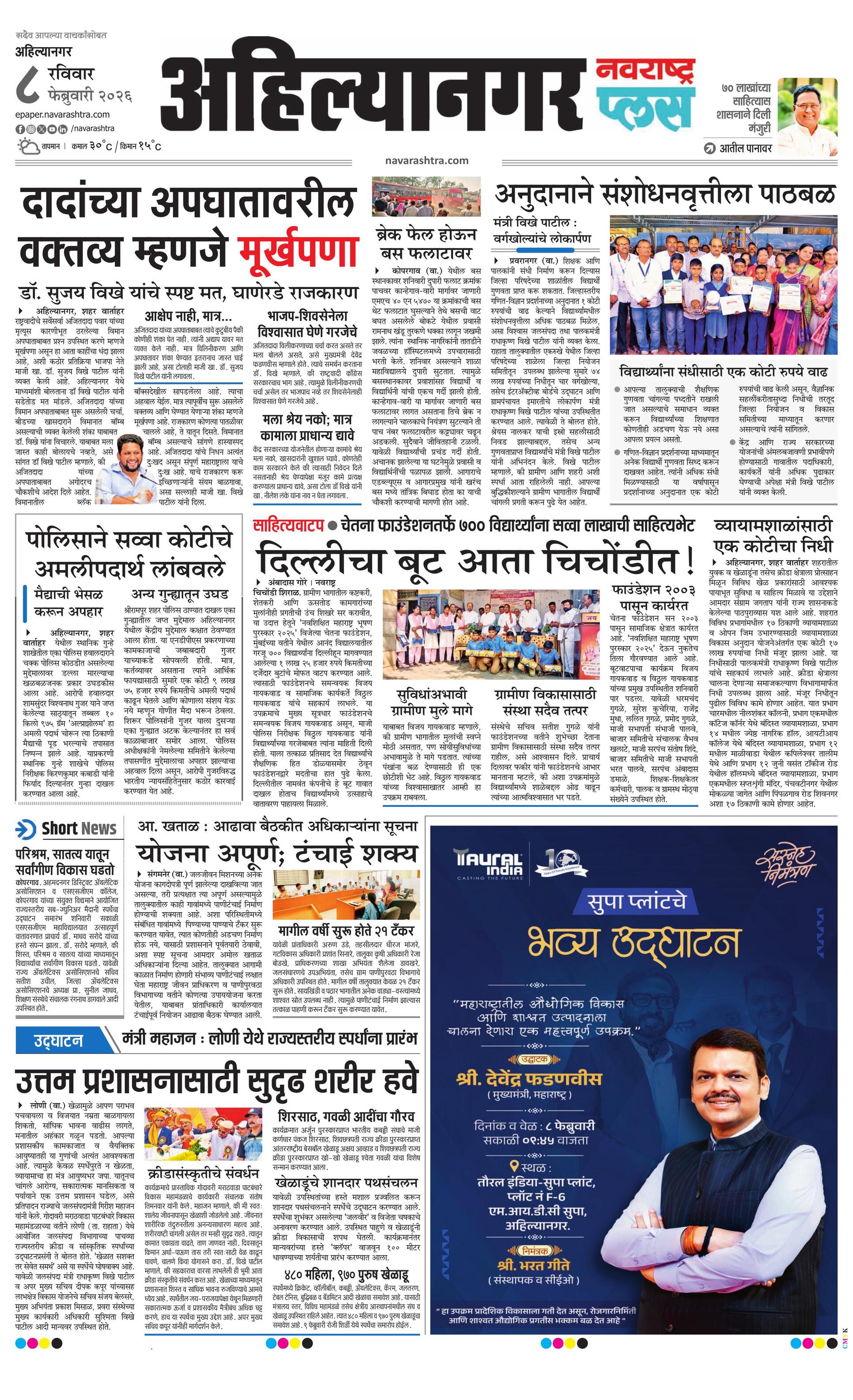 Ahilyanagarplus E-paper | 2026-02-08 | Page 1 | Navarashtra