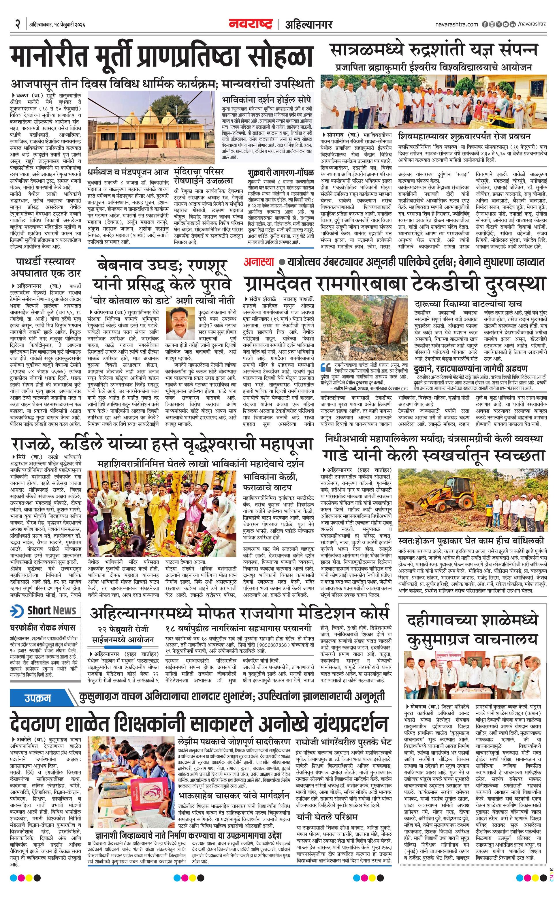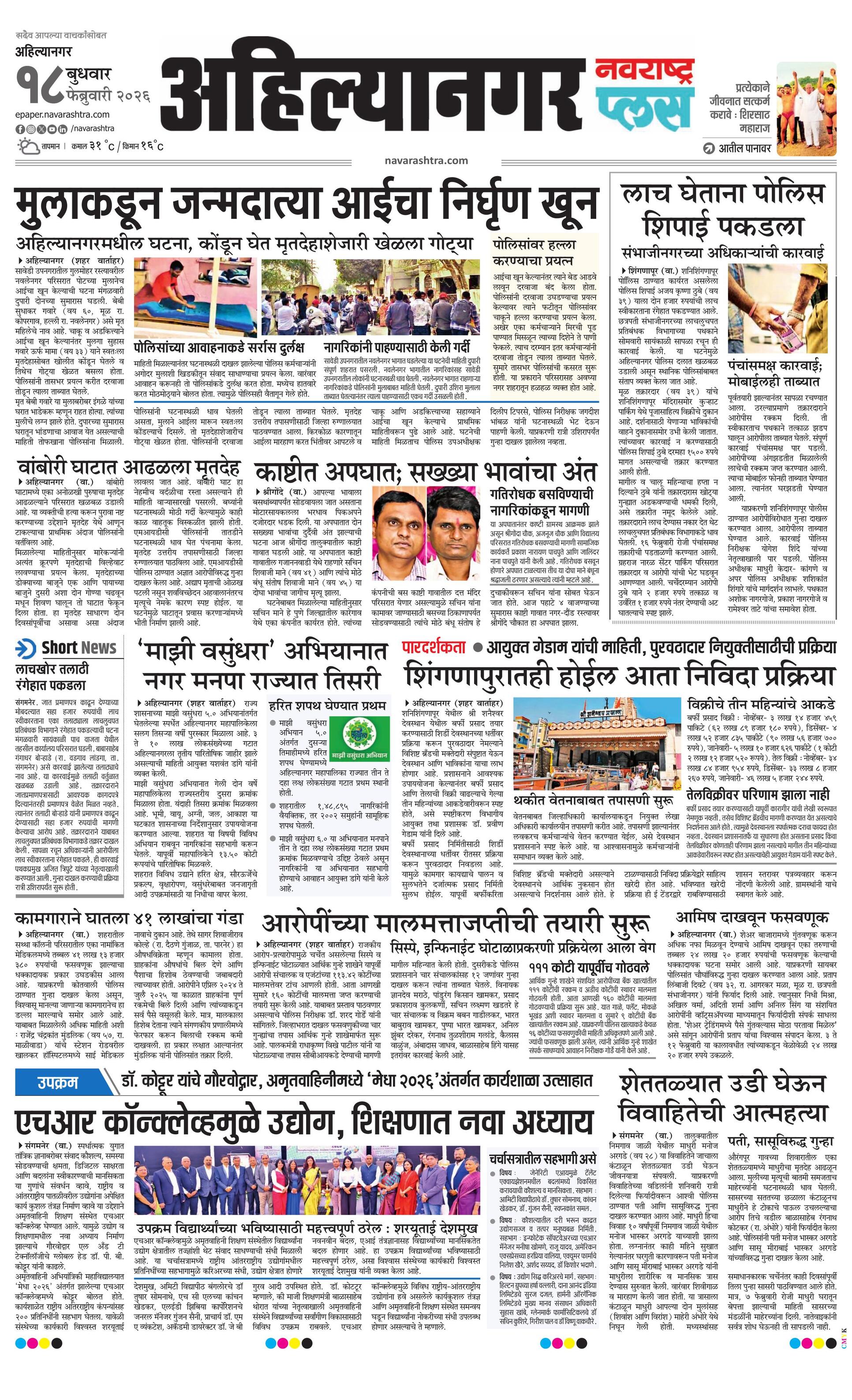 Ahilyanagarplus E-paper | 2026-02-18 | Page 1 | Navarashtra