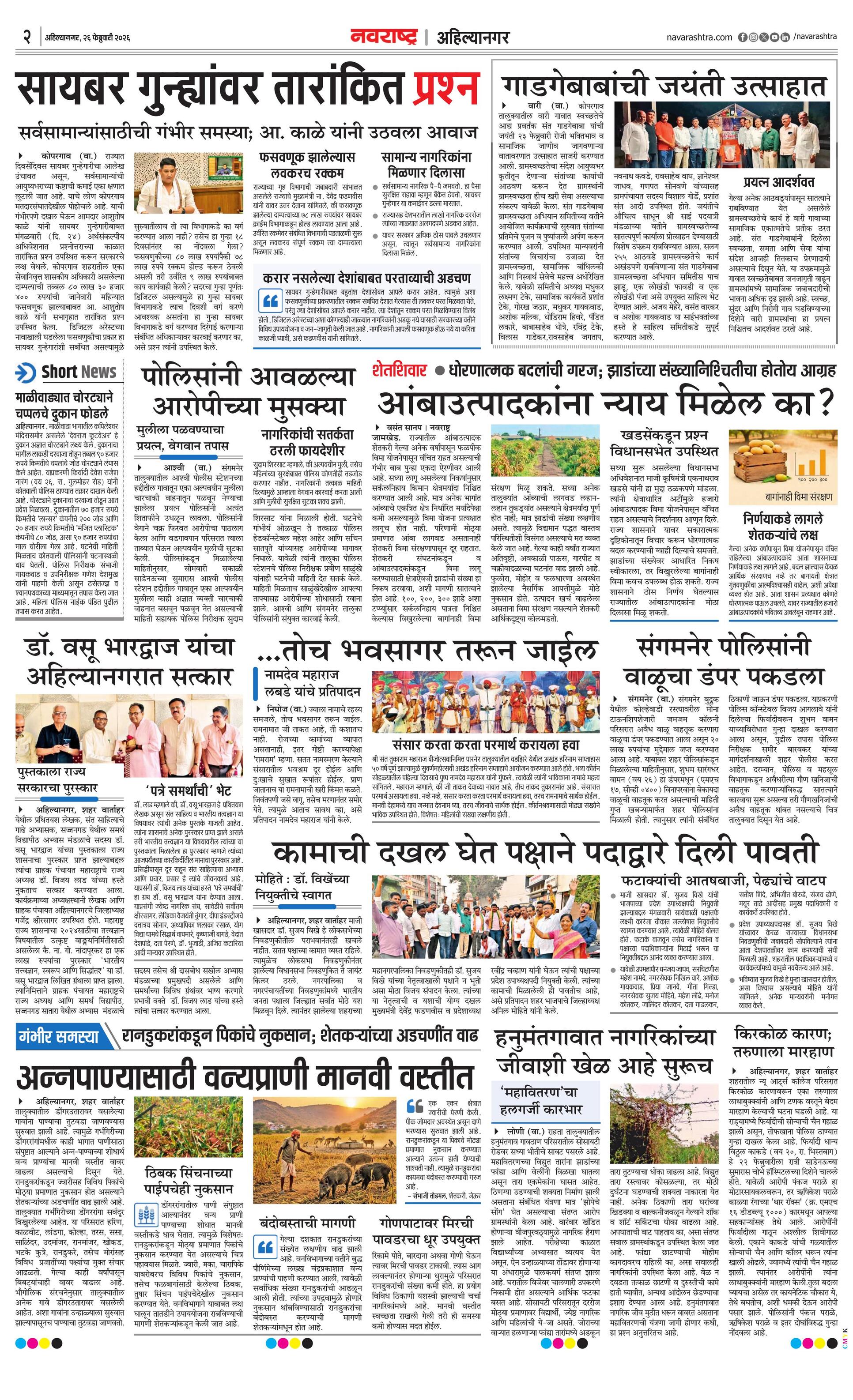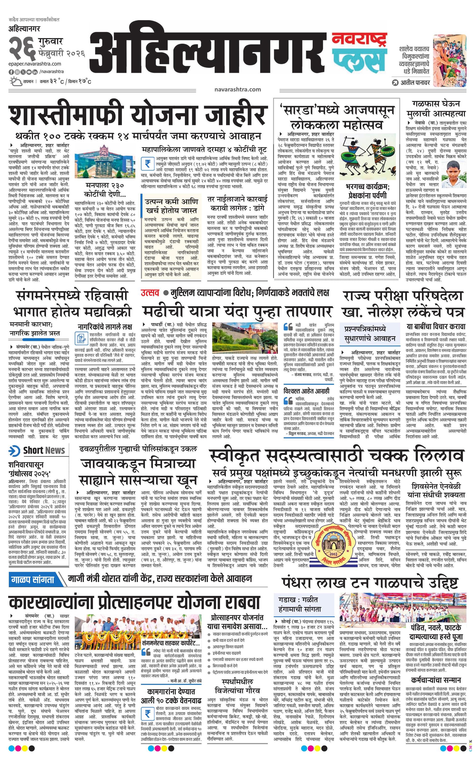 Ahilyanagarplus E-paper | 2026-02-26 | Page 1 | Navarashtra