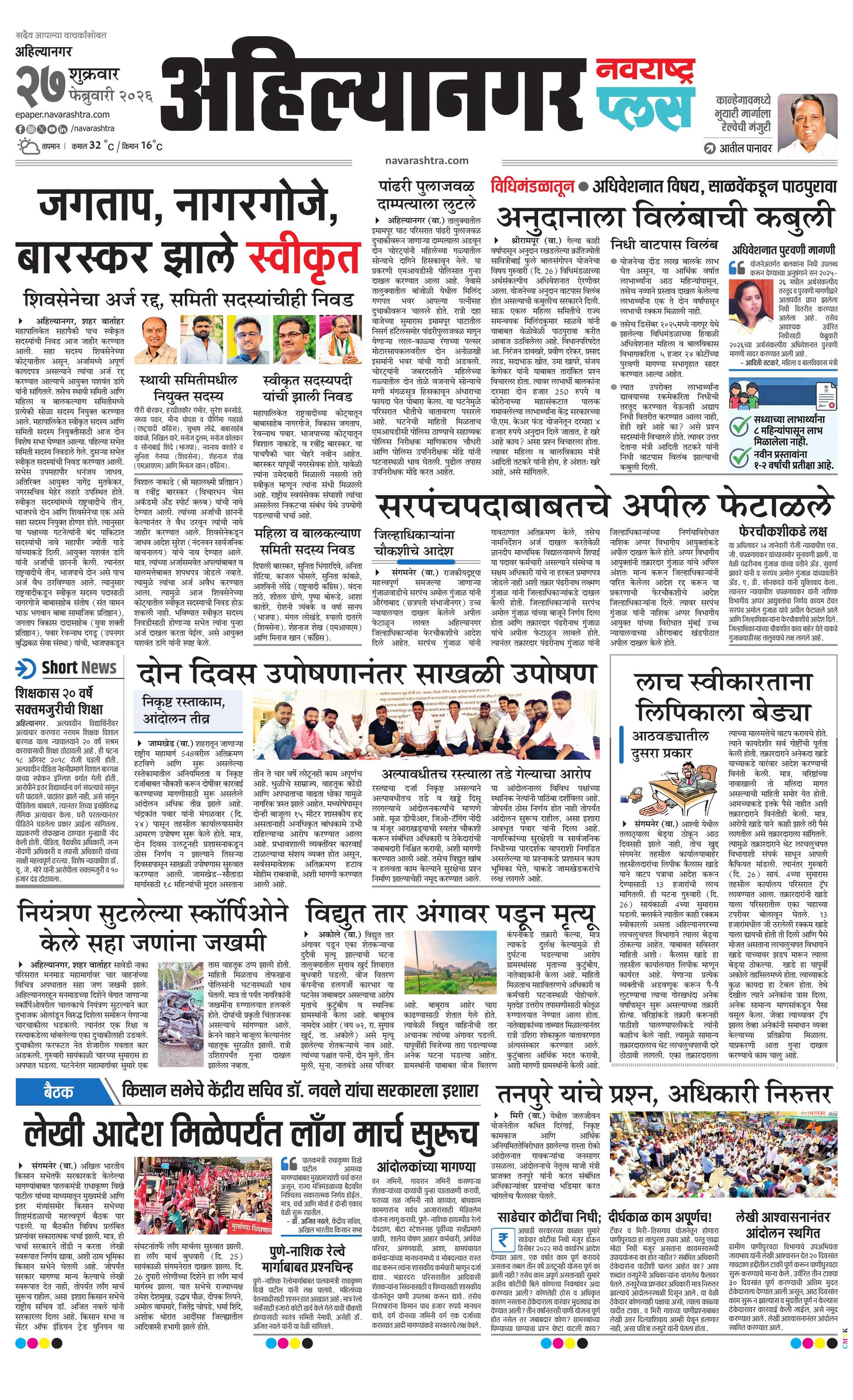Ahilyanagarplus E-paper | 2026-02-27 | Page 1 | Navarashtra