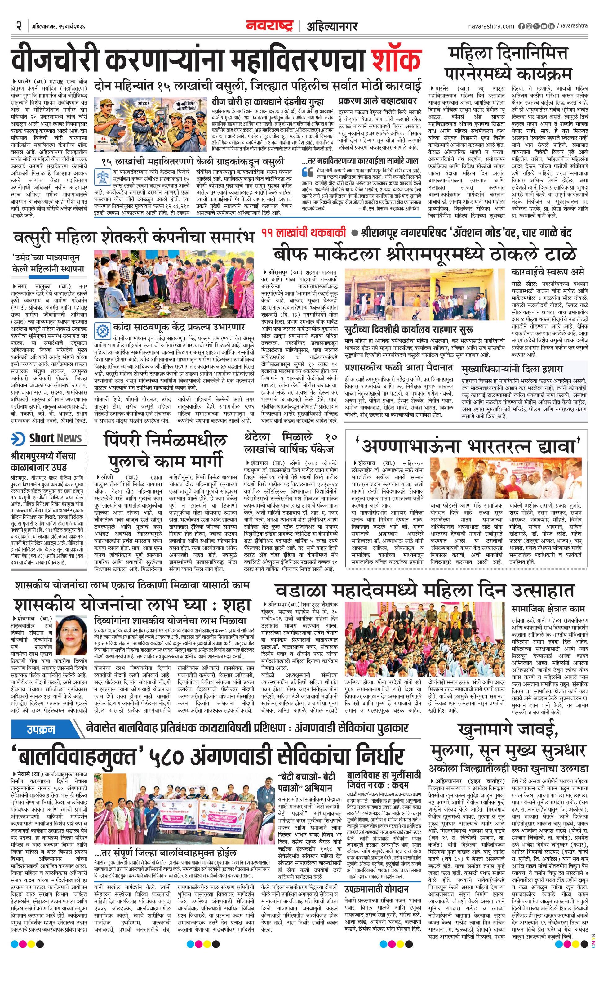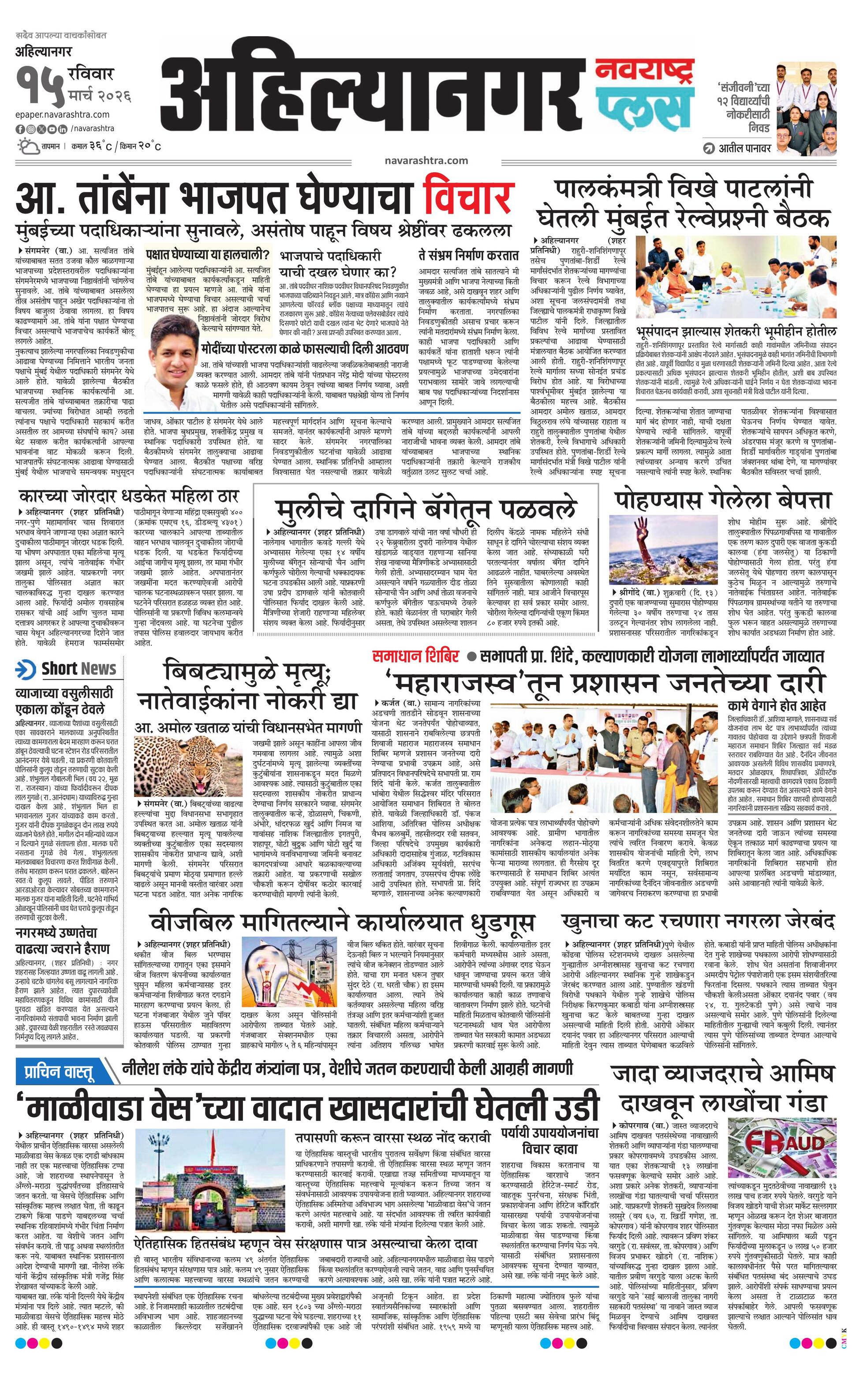 Ahilyanagarplus E-paper | 2026-03-15 | Page 1 | Navarashtra