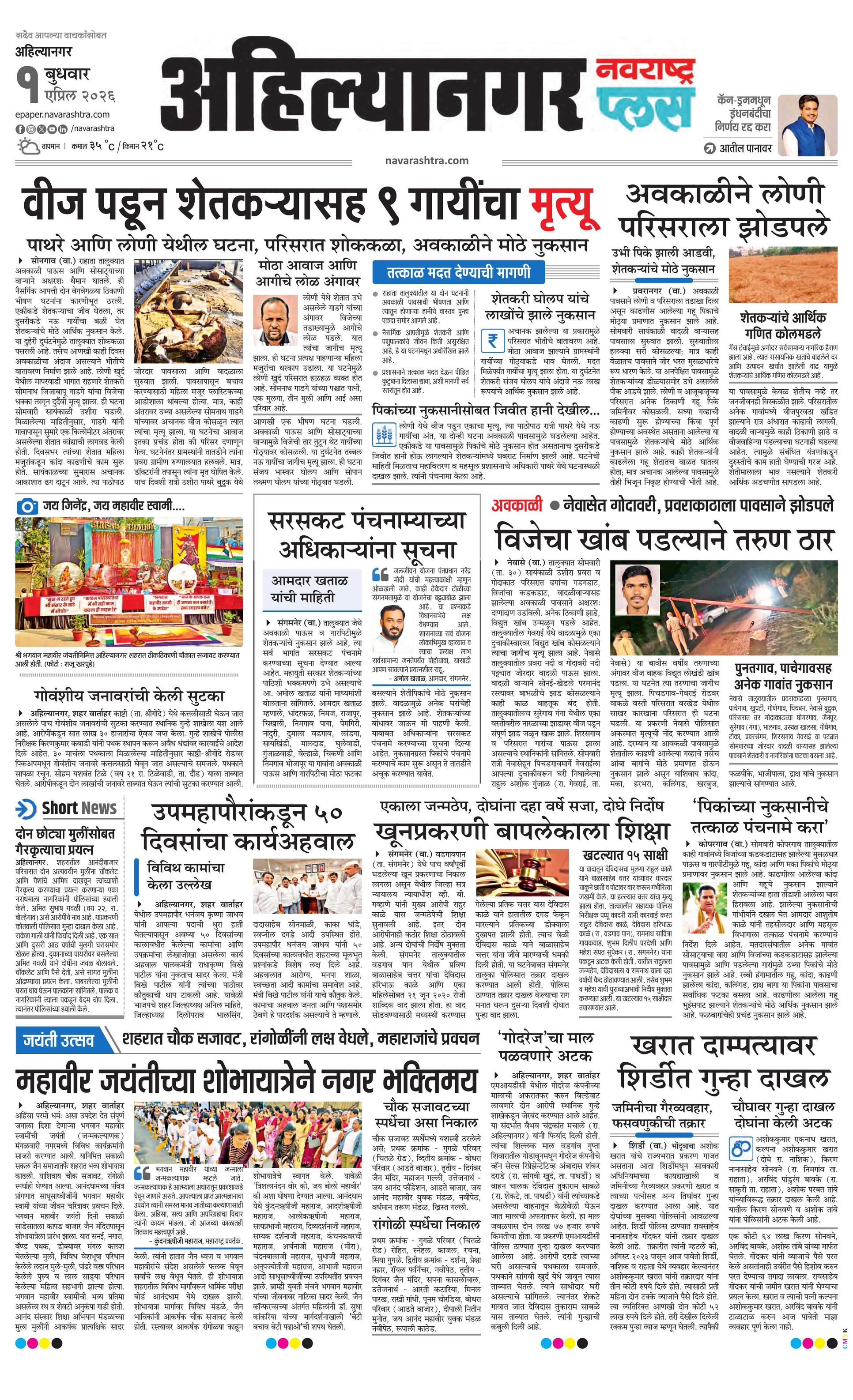 Ahilyanagarplus E-paper | 2026-04-01 | Page 1 | Navarashtra