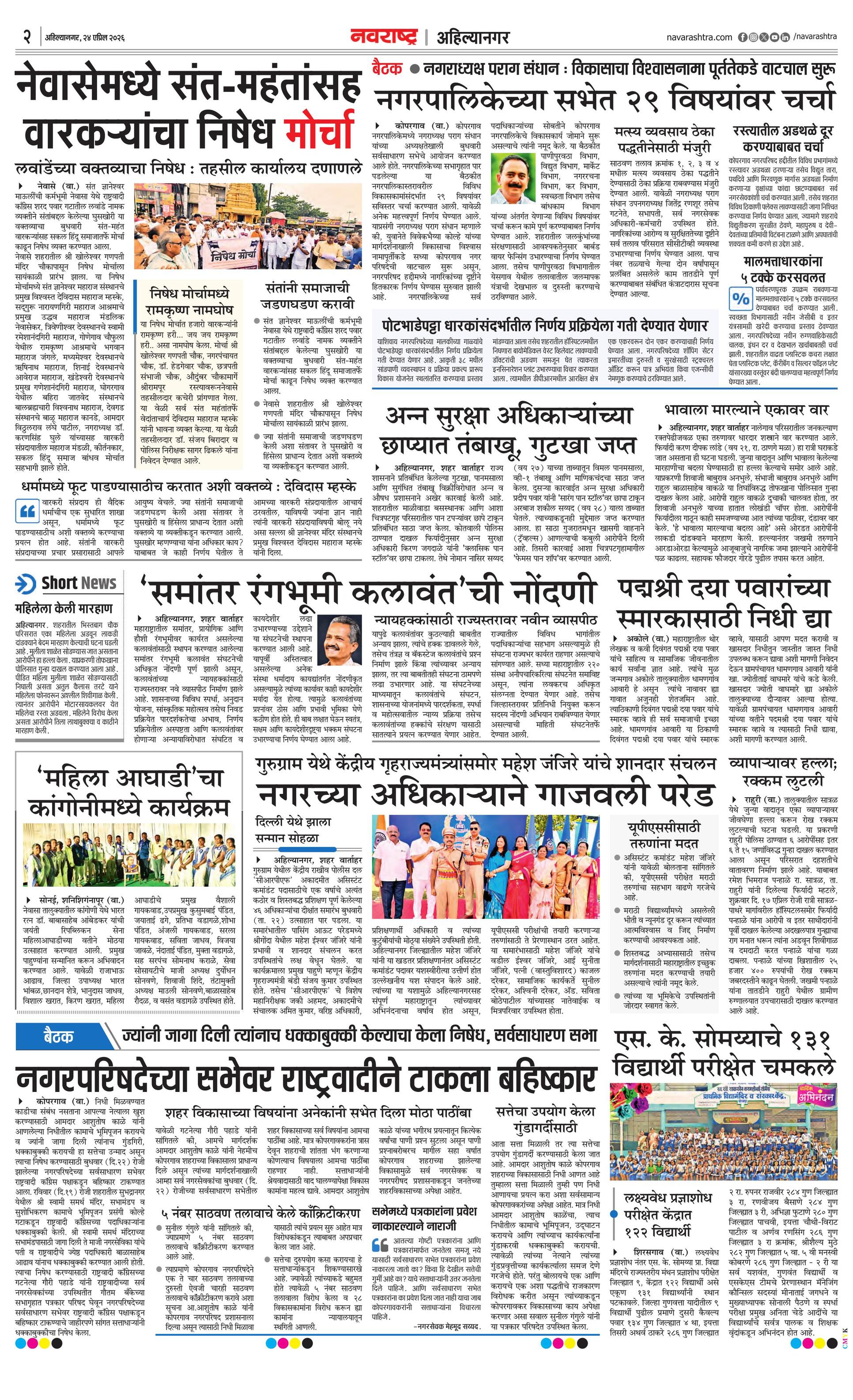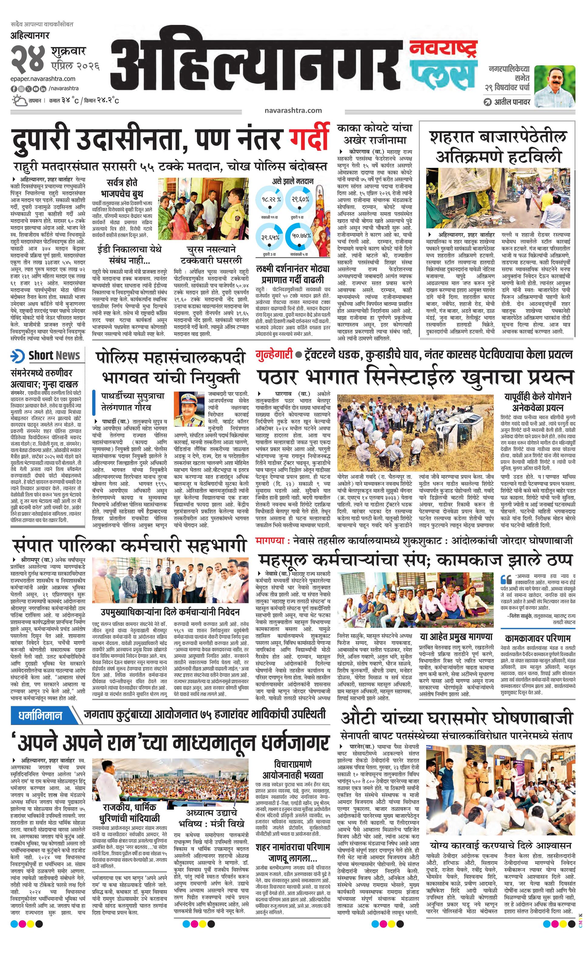 Ahilyanagarplus E-paper | 2026-04-24 | Page 1 | Navarashtra