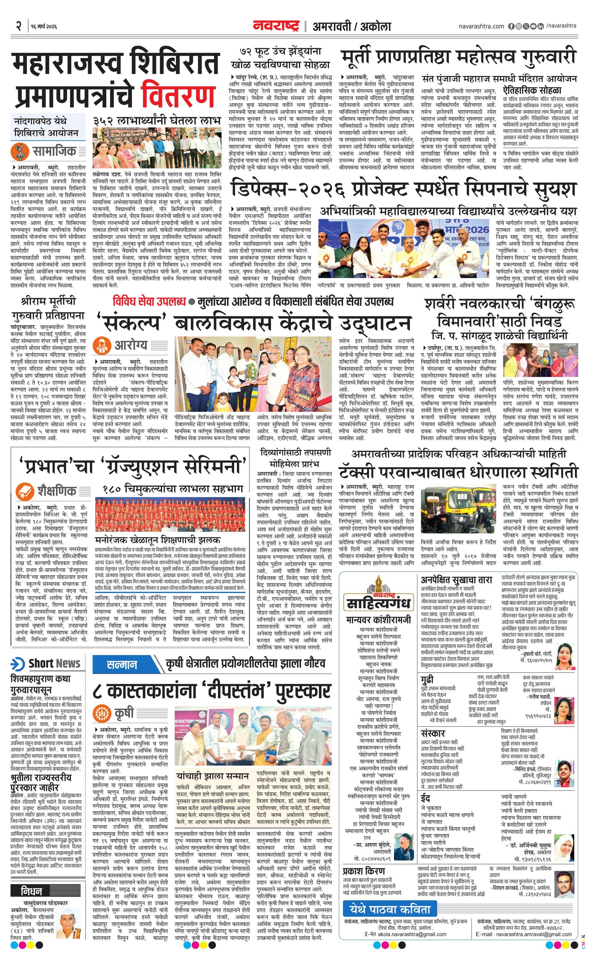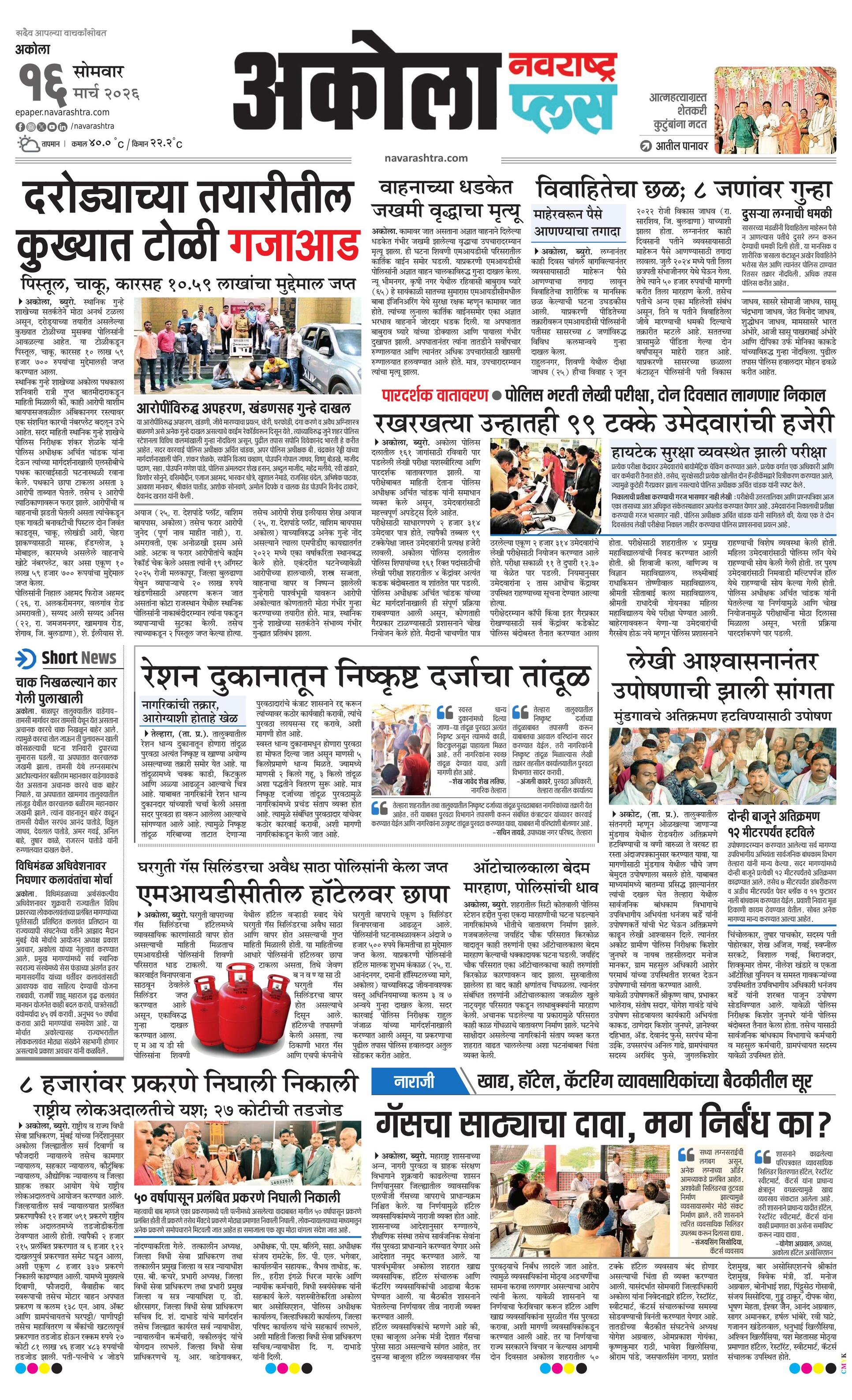 Akolaplus E-paper | 2026-03-16 | Page 1 | Navarashtra