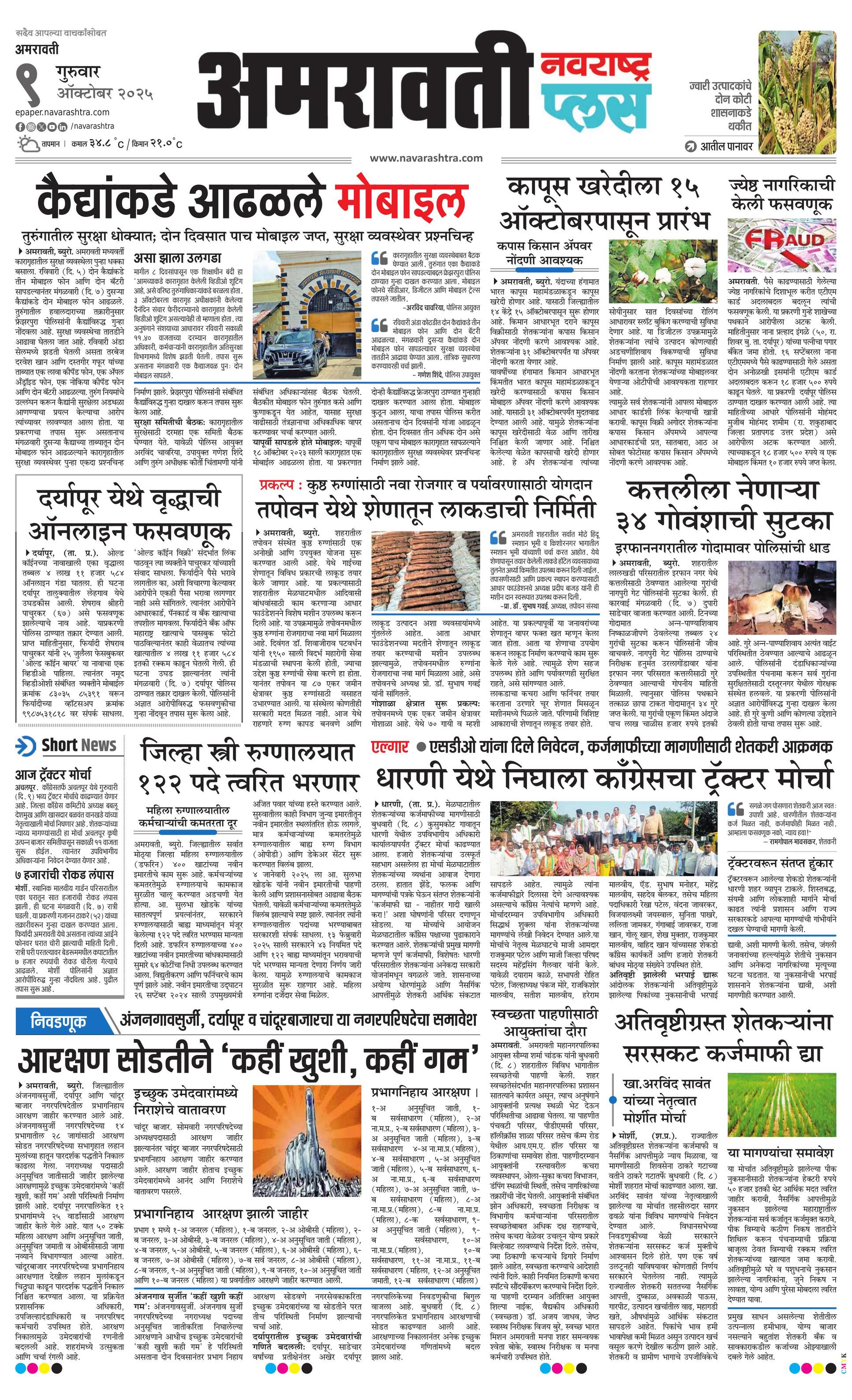 Amravatiplus E-paper | 2025-10-09 | Page 1 | Navarashtra