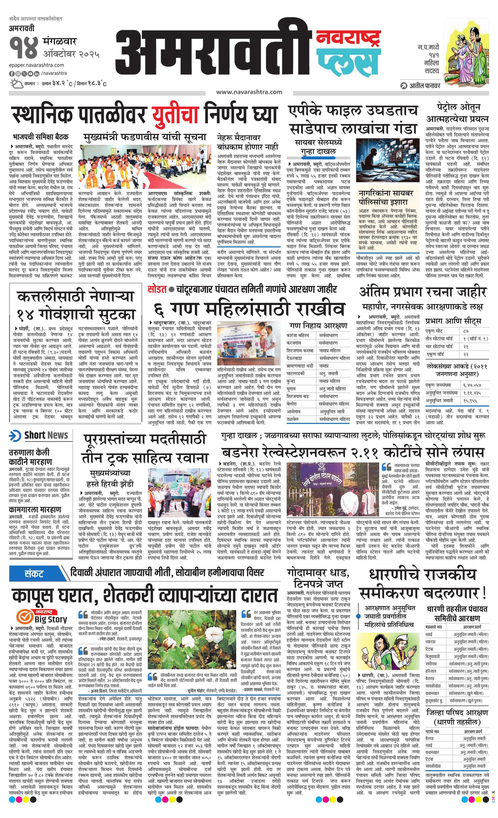 Amravatiplus E-paper | 2025-10-14 | Page 1 | Navarashtra