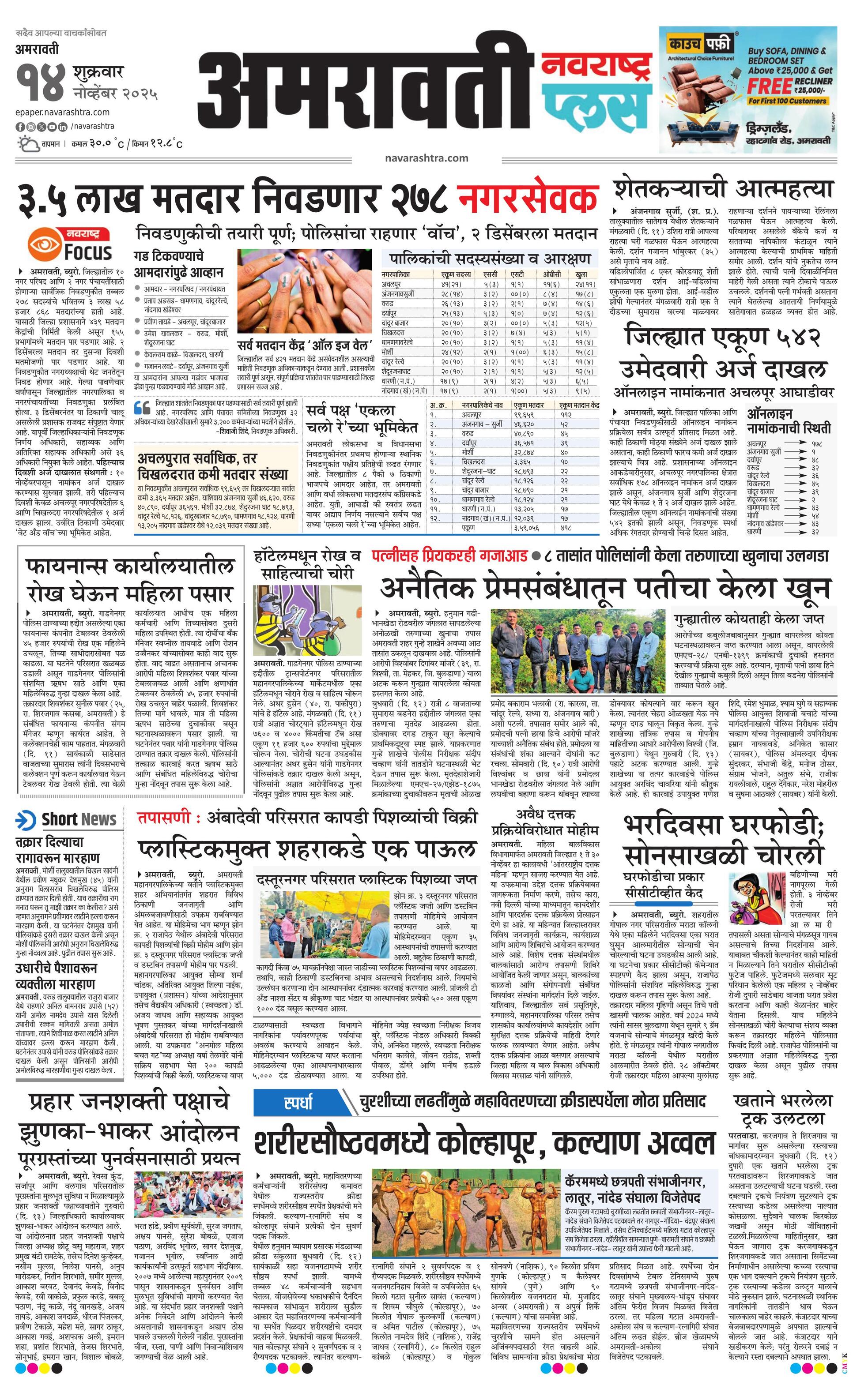 Amravatiplus E-paper | 2025-11-14 | Page 1 | Navarashtra