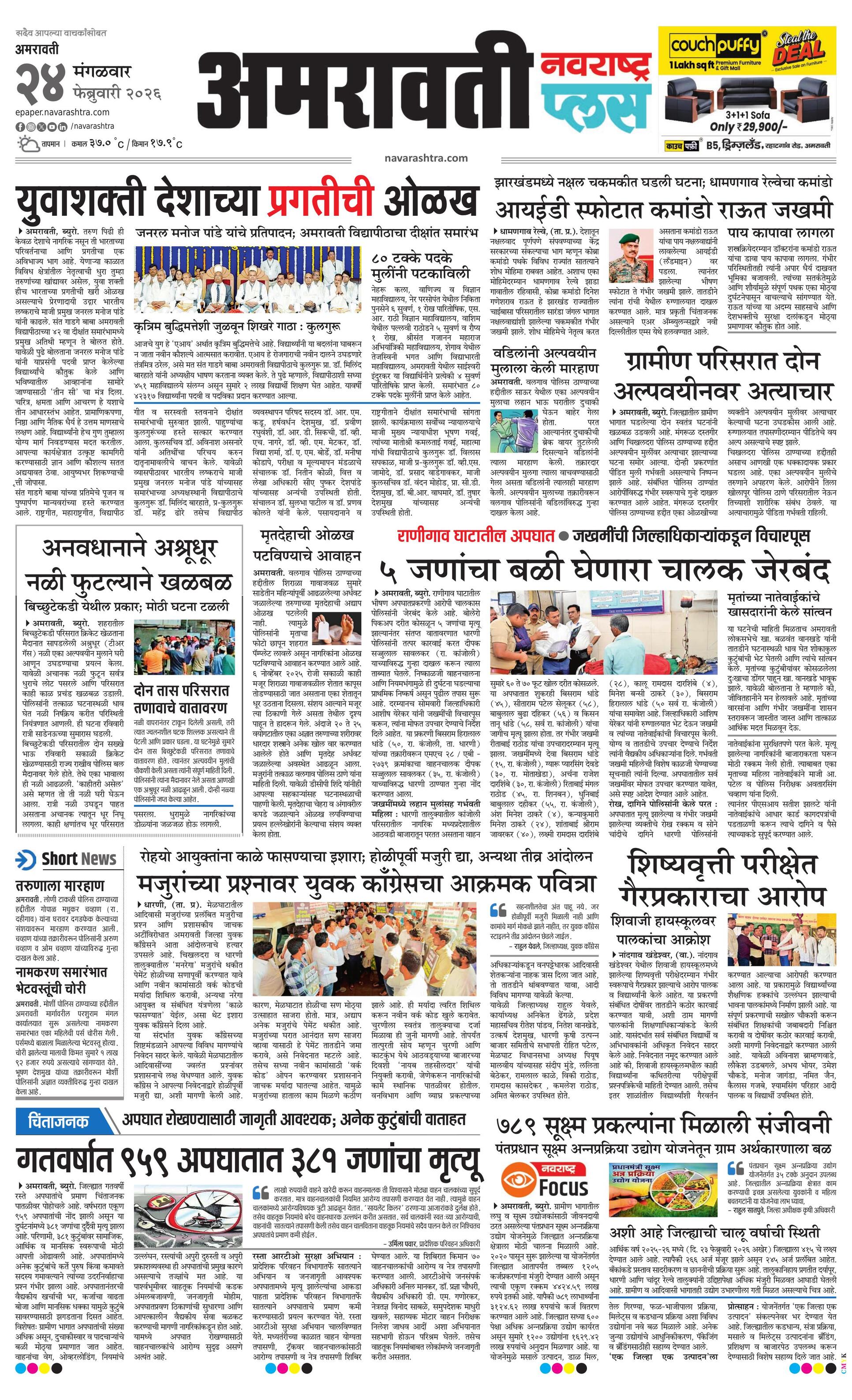 Amravatiplus E-paper | 2026-02-24 | Page 1 | Navarashtra