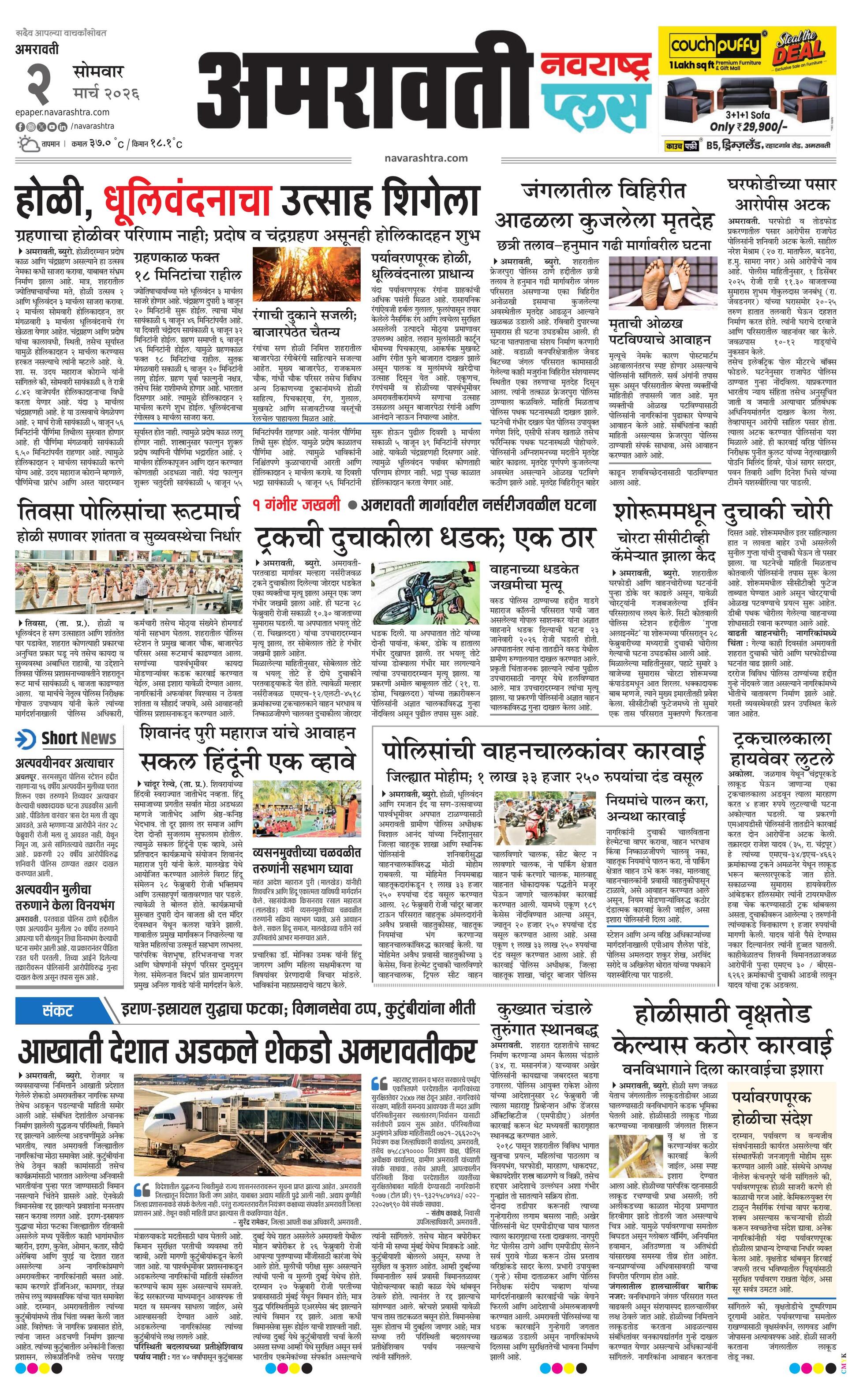 Amravatiplus E-paper | 2026-03-02 | Page 1 | Navarashtra