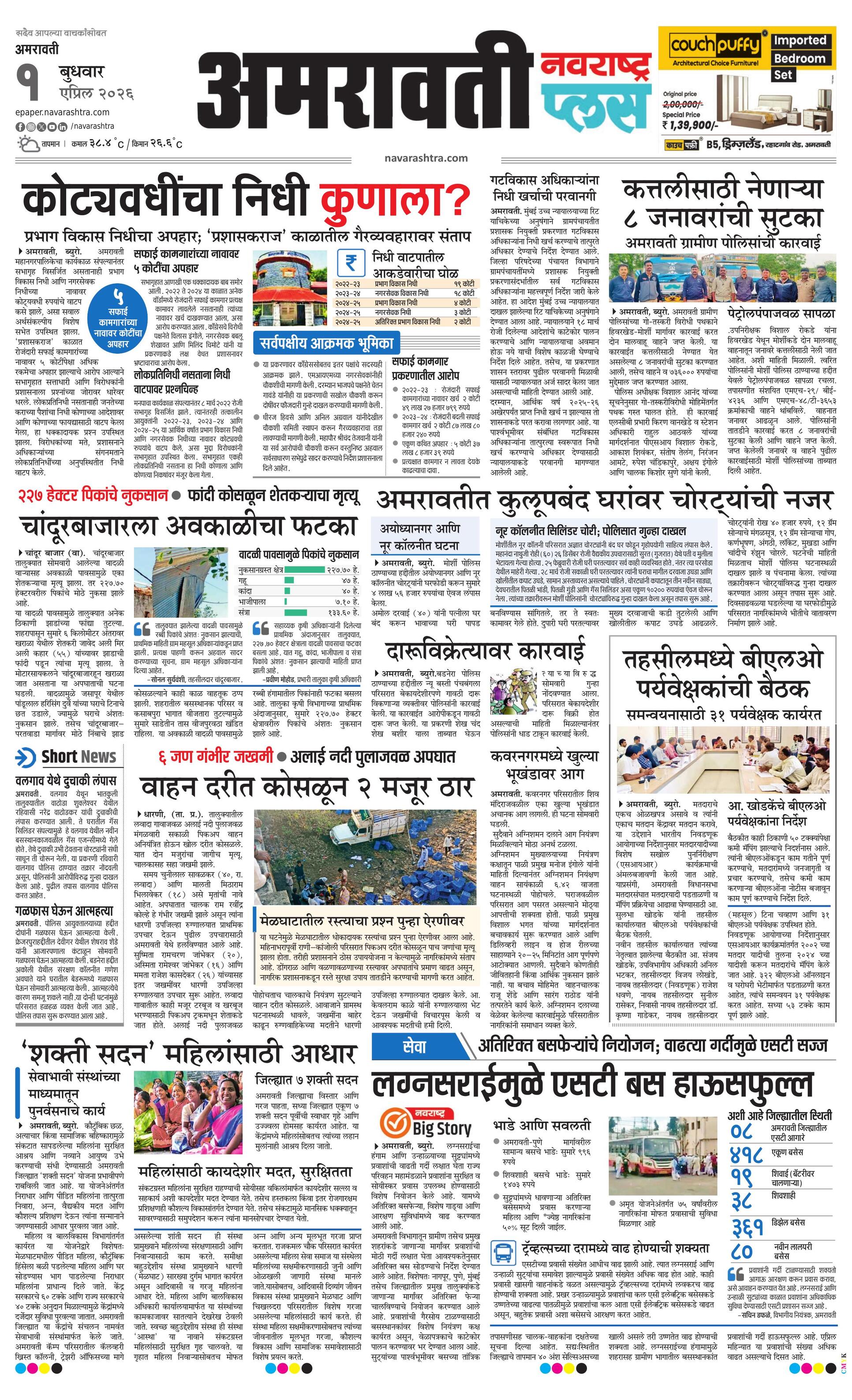Amravatiplus E-paper | 2026-04-01 | Page 1 | Navarashtra
