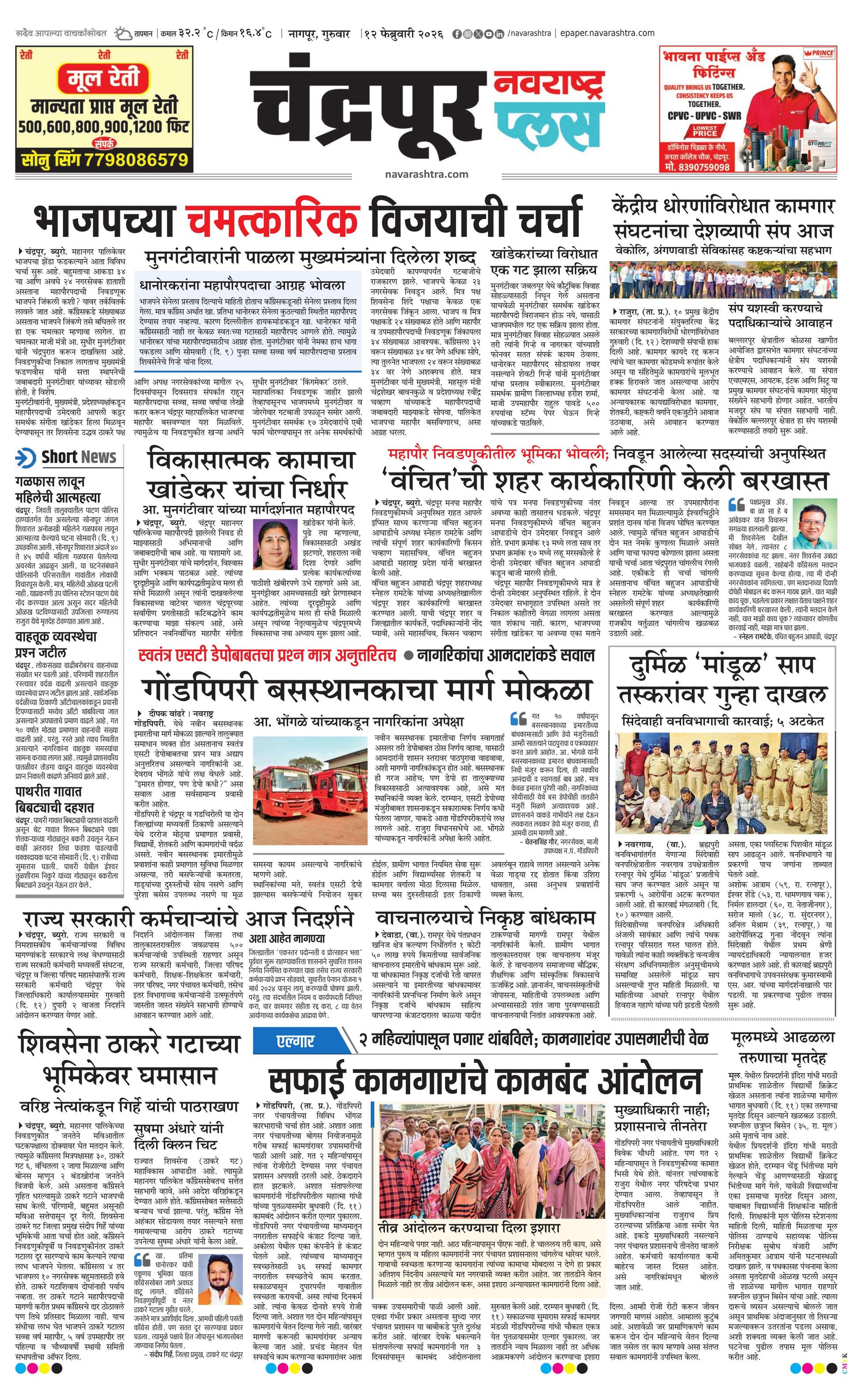 Chandrapurplus E-paper | 2026-02-12 | Page 1 | Navarashtra