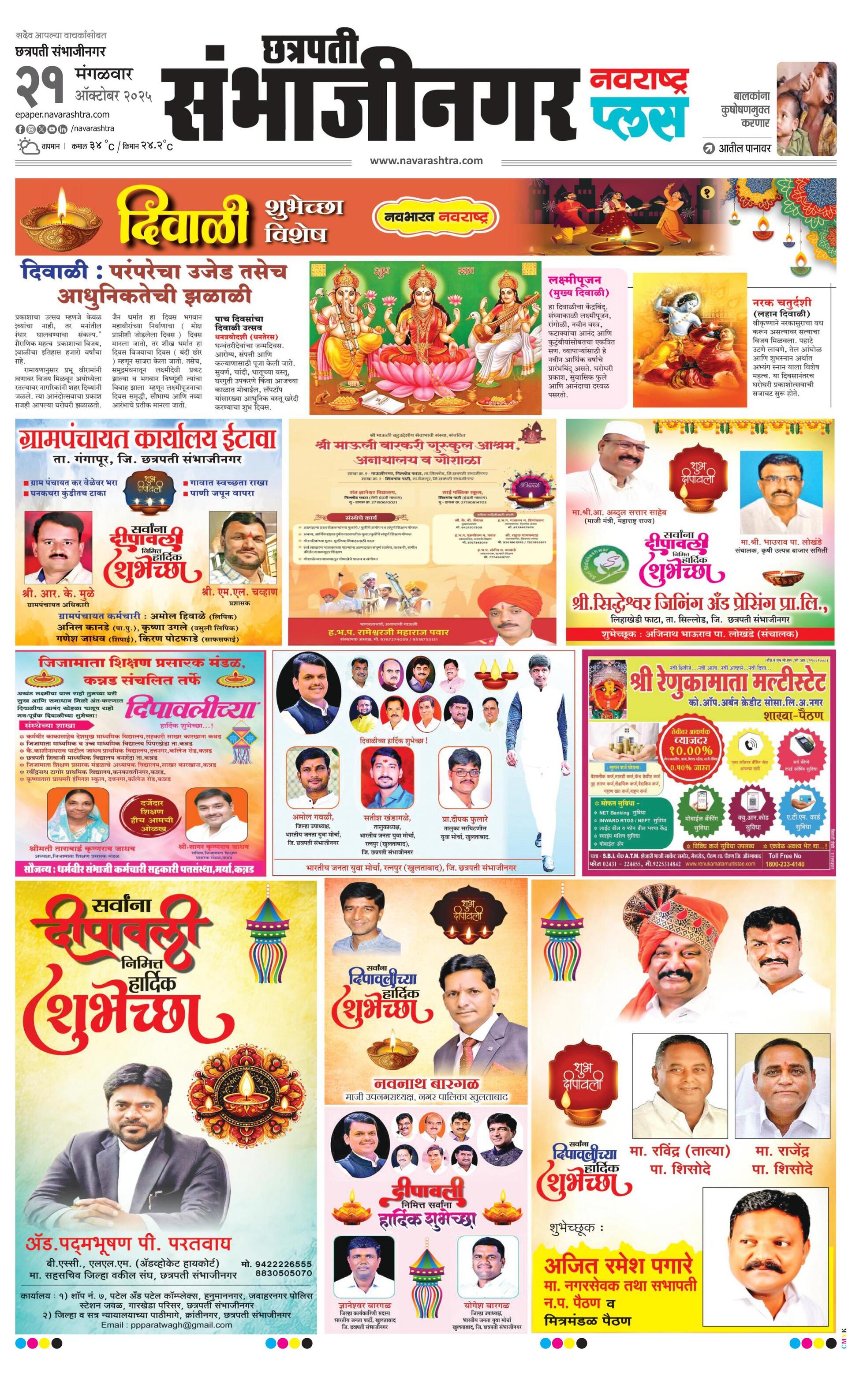 Chhatrapatisambhajinagarplus E-paper | 2025-10-21 | Page 1 | Navarashtra