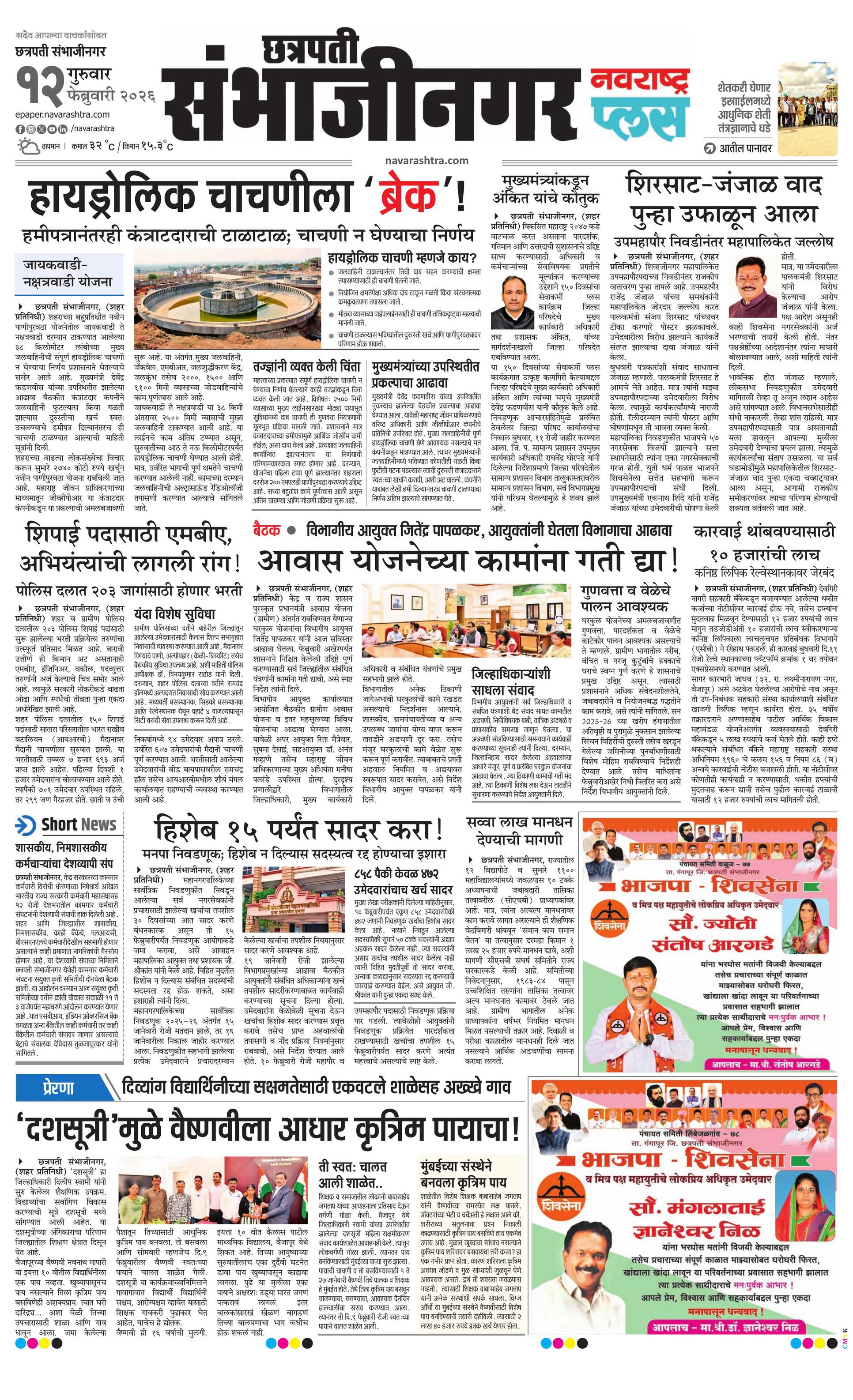 Chhatrapatisambhajinagarplus E-paper | 2026-02-12 | Page 1