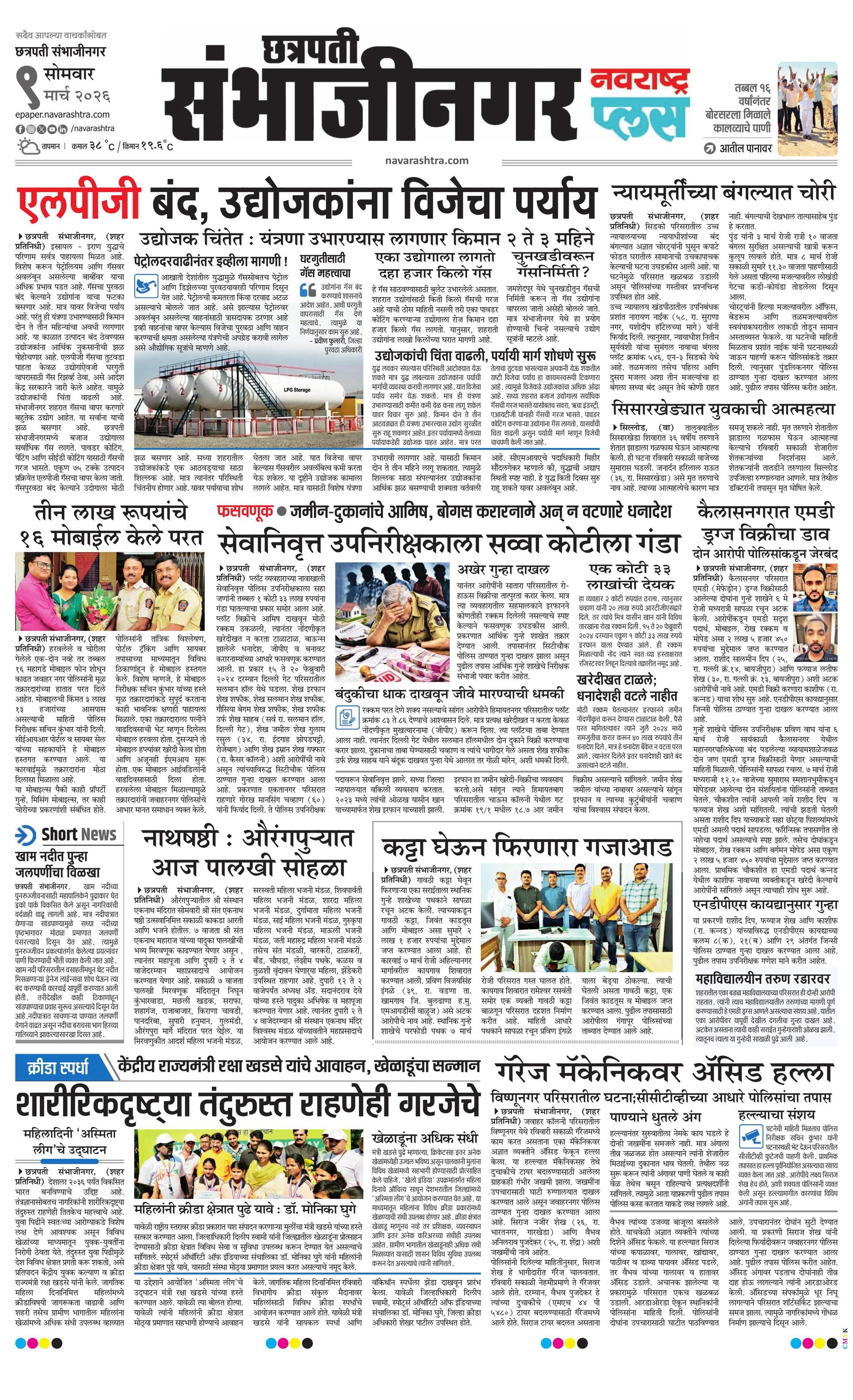 Chhatrapatisambhajinagarplus E-paper | 2026-03-09 | Page 1