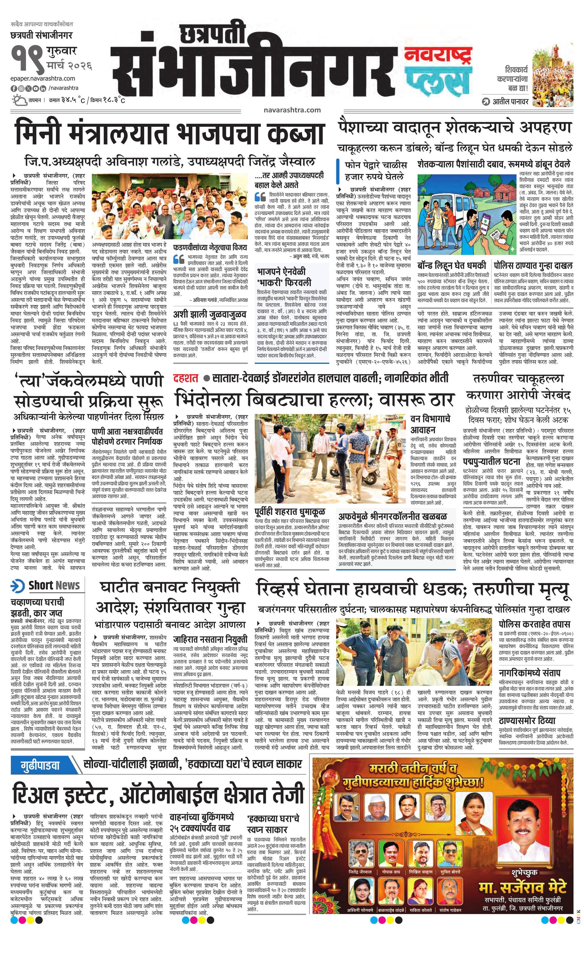 Chhatrapatisambhajinagarplus E-paper | 2026-03-19 | Page 1