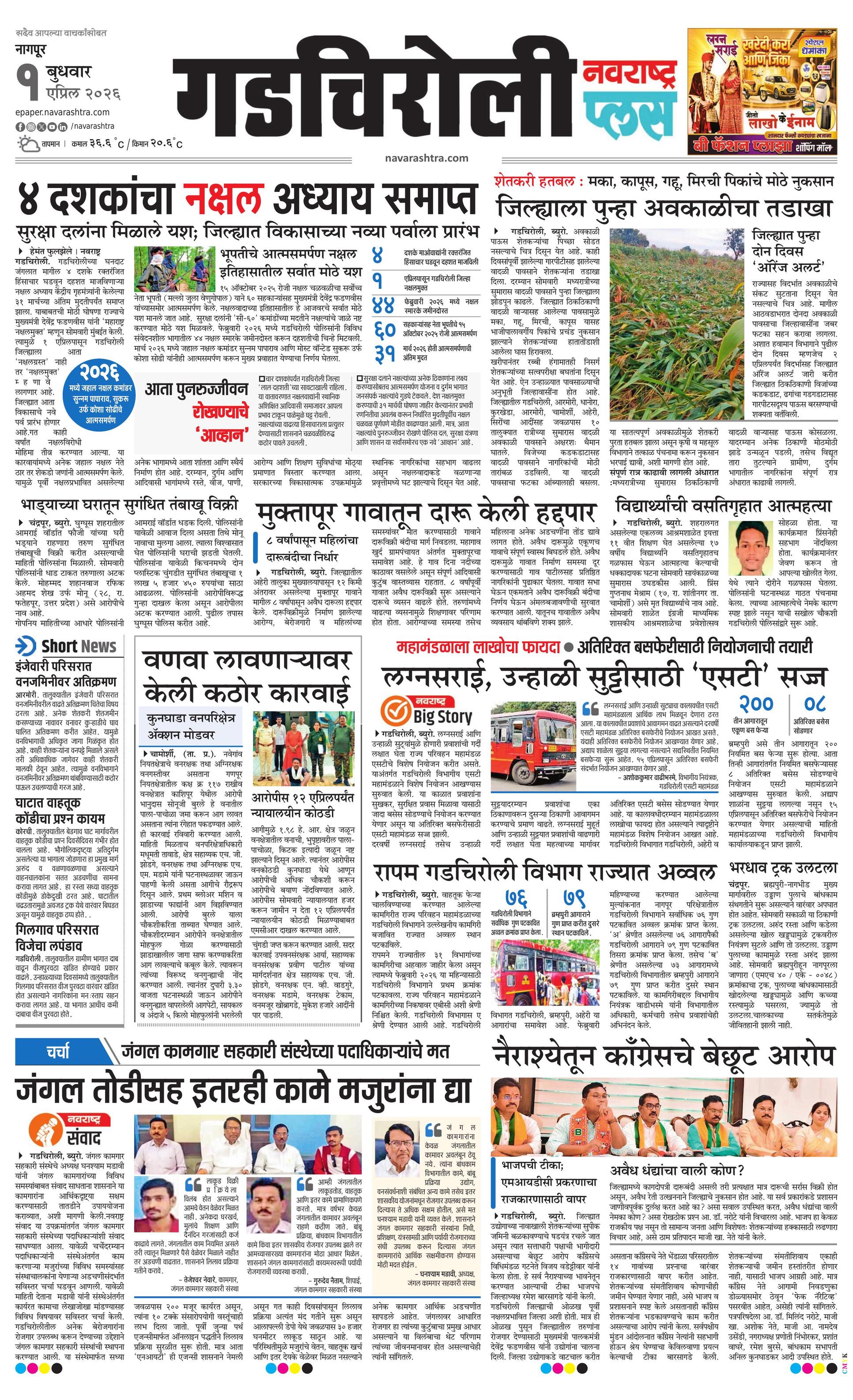 Gadchiroliplus E-paper | 2026-04-01 | Page 1 | Navarashtra