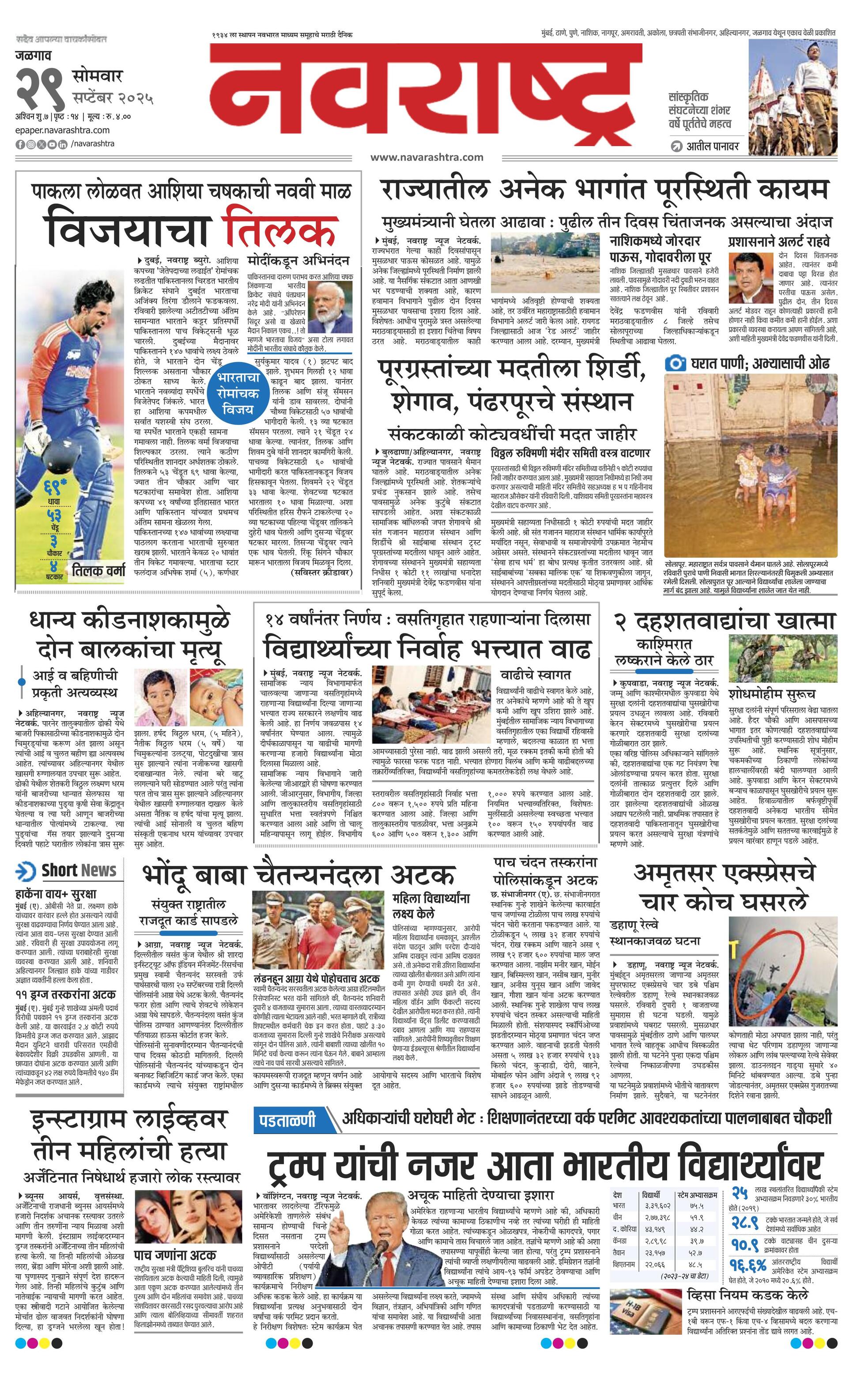 Jalgaonmain E-paper | 2025-09-29 | Page 1 | Navarashtra
