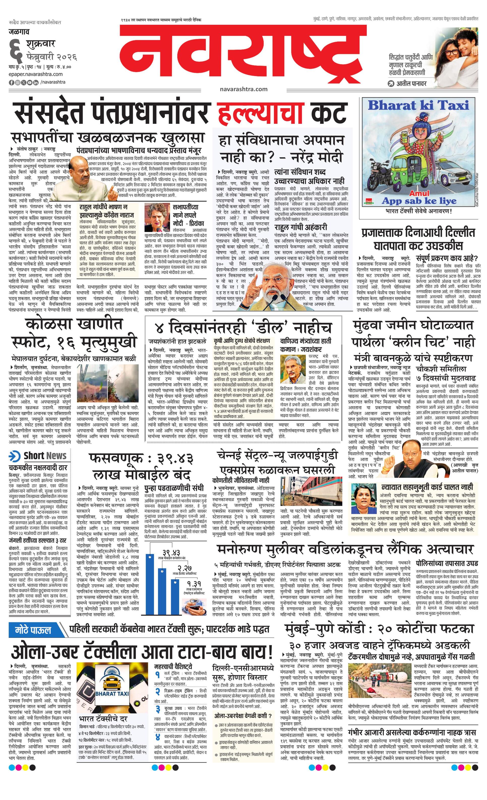 Jalgaonmain E-paper | 2026-02-06 | Page 1 | Navarashtra
