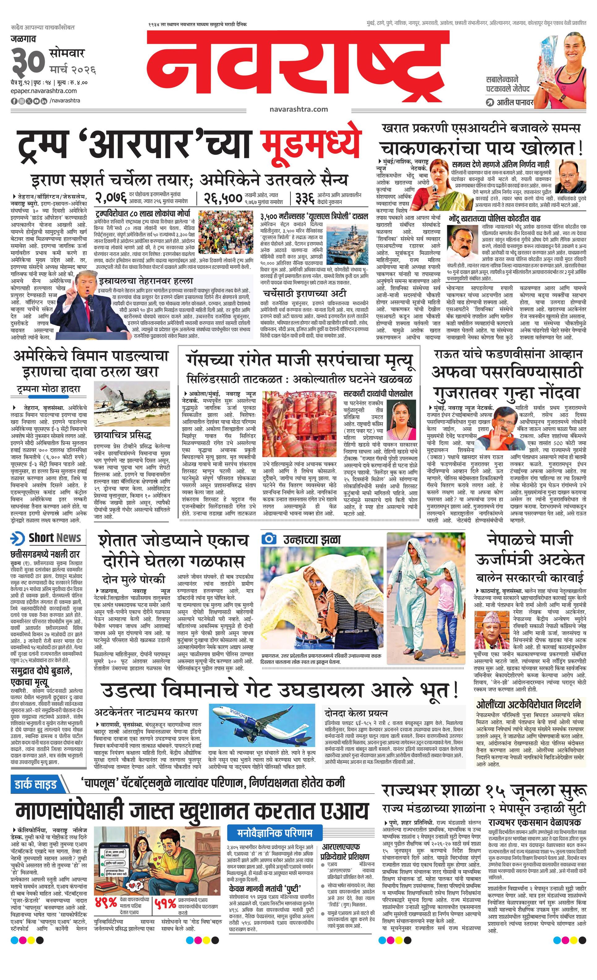Jalgaonmain E-paper | 2026-03-30 | Page 1 | Navarashtra