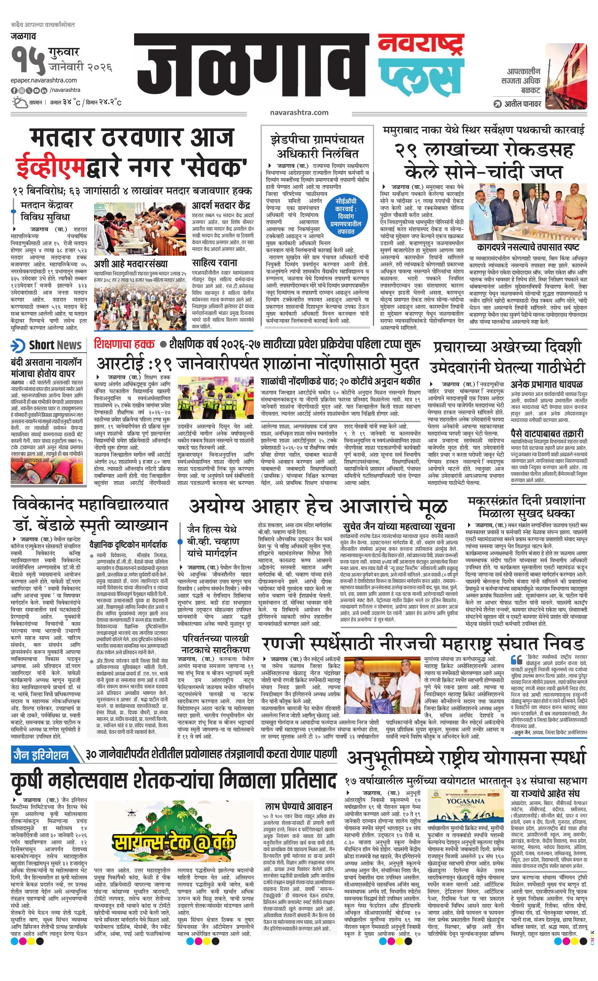 Jalgaonplus E-paper | 2026-01-15 | Page 1 | Navarashtra