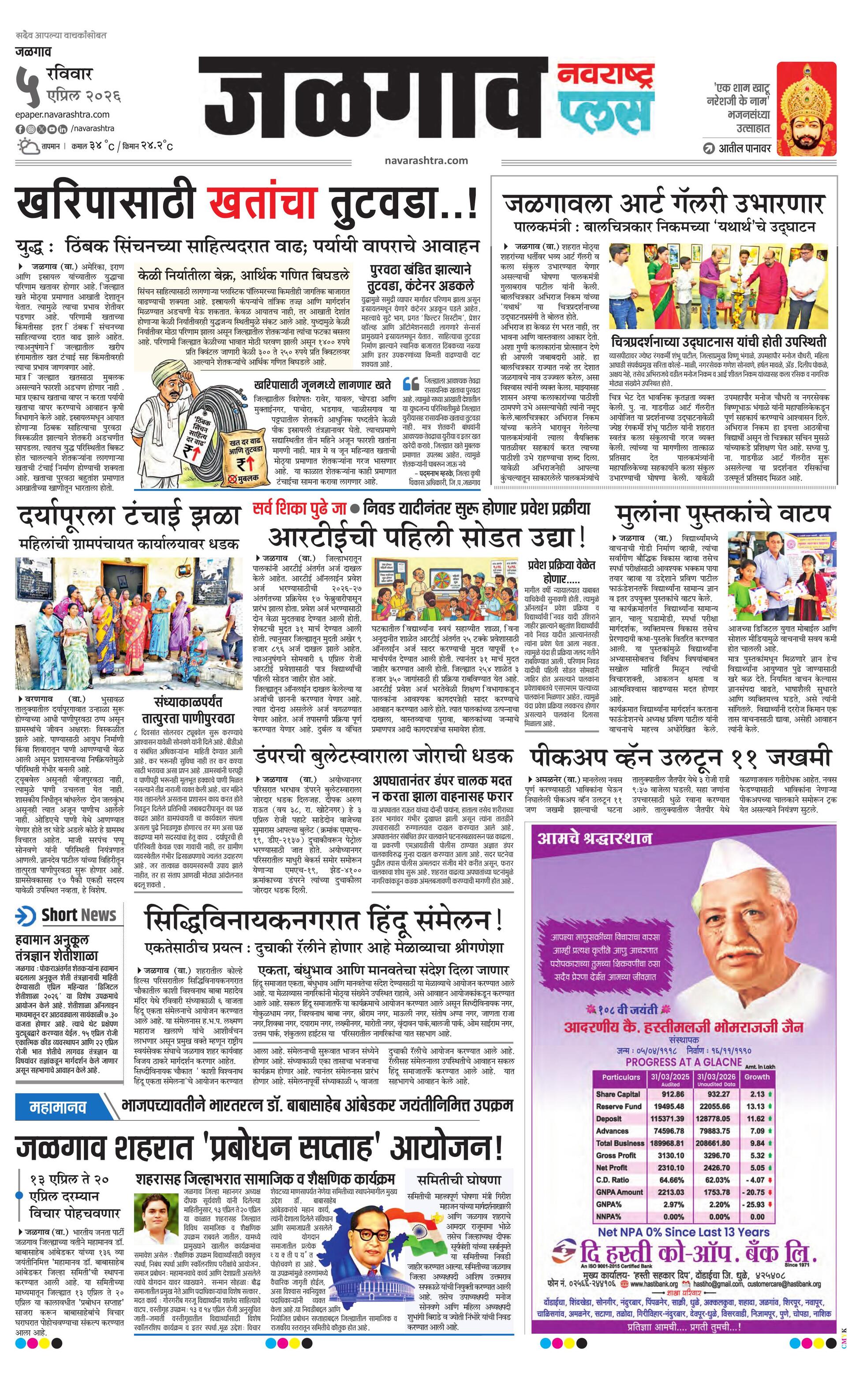 Jalgaonplus E-paper | 2026-04-05 | Page 1 | Navarashtra