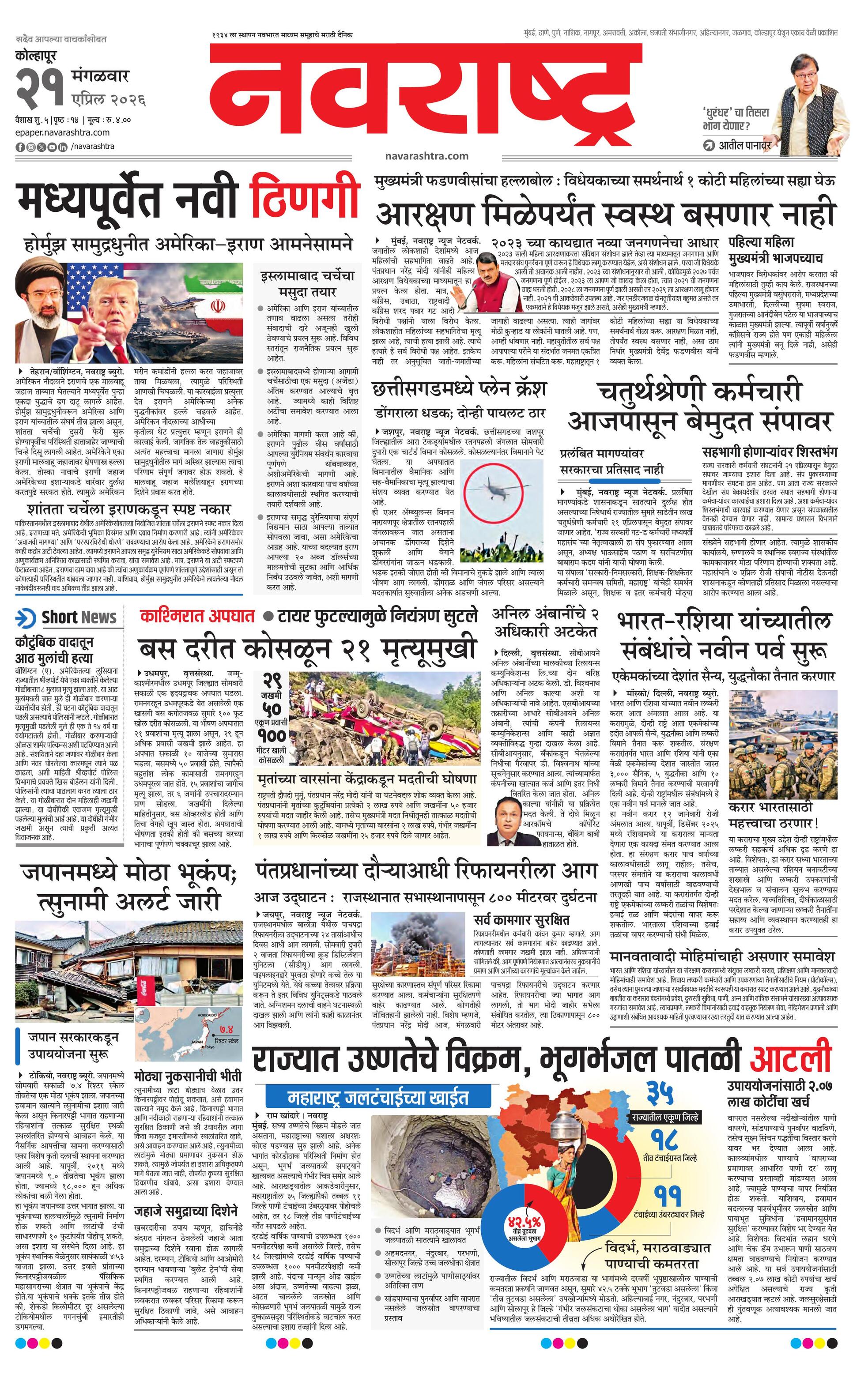 Kolhapurmain E-paper | 2026-04-21 | Page 1 | Navarashtra