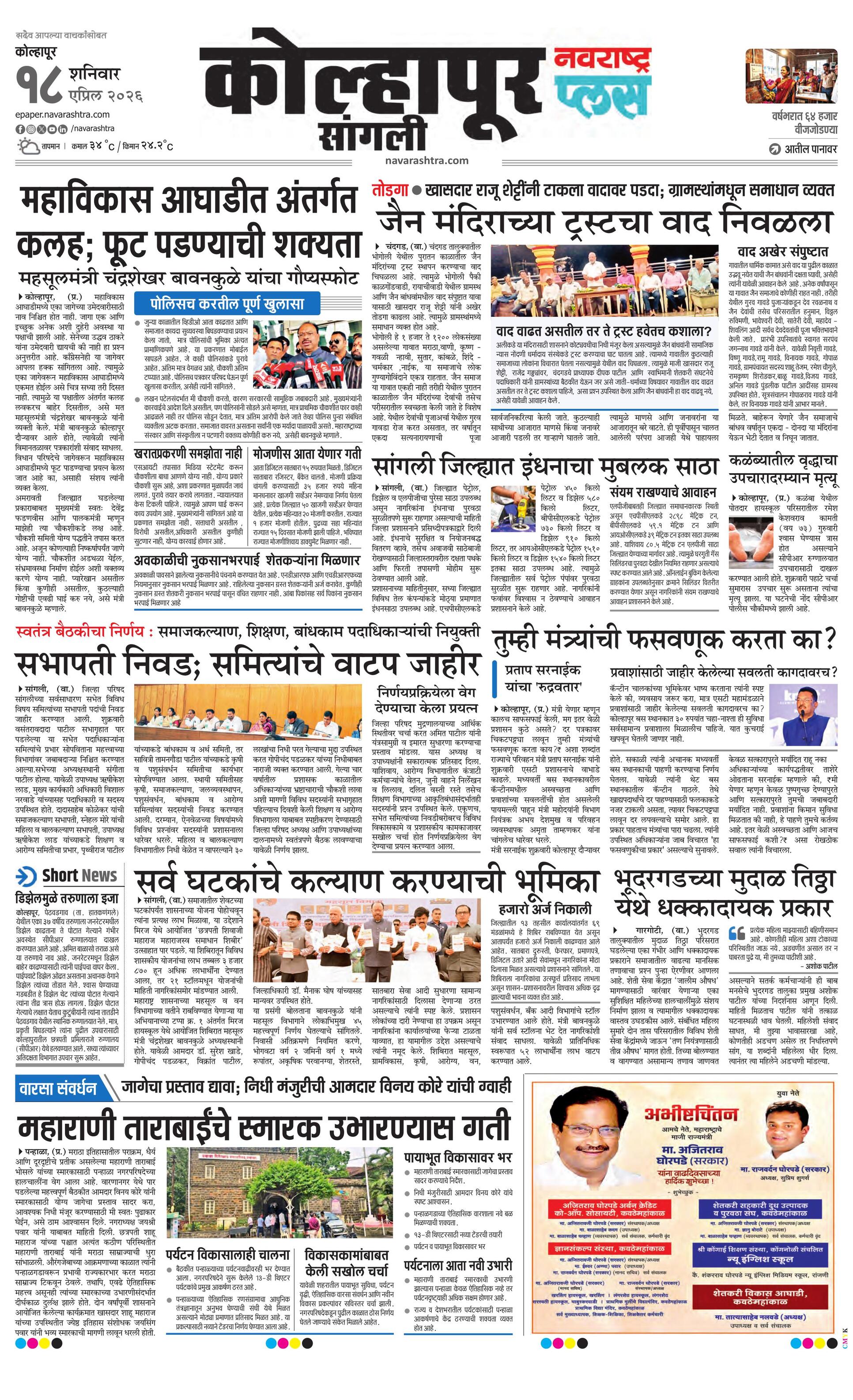 Kolhapurplus E-paper | 2026-04-18 | Page 1 | Navarashtra