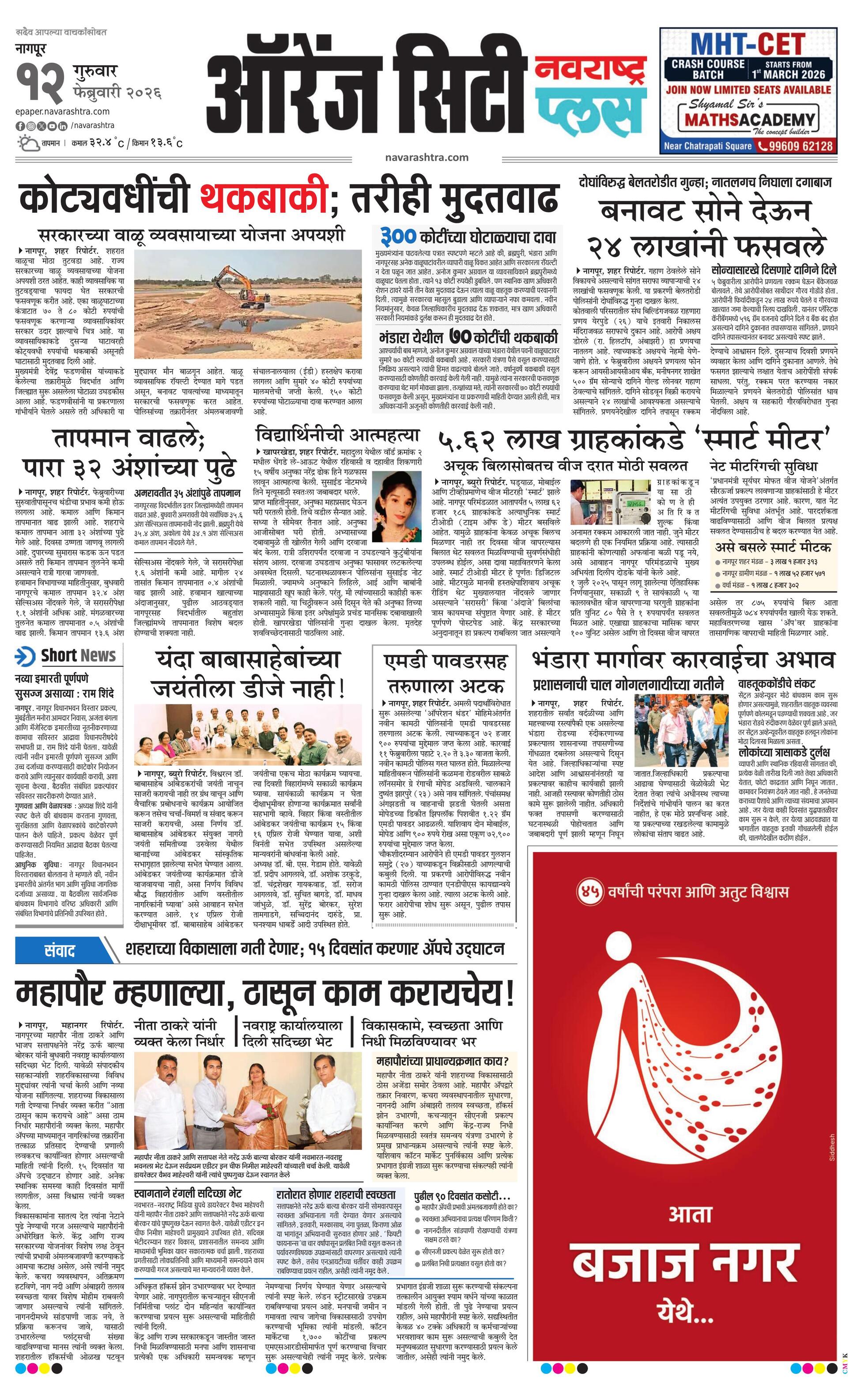 Orangecityplus E-paper | 2026-02-12 | Page 1 | Navarashtra