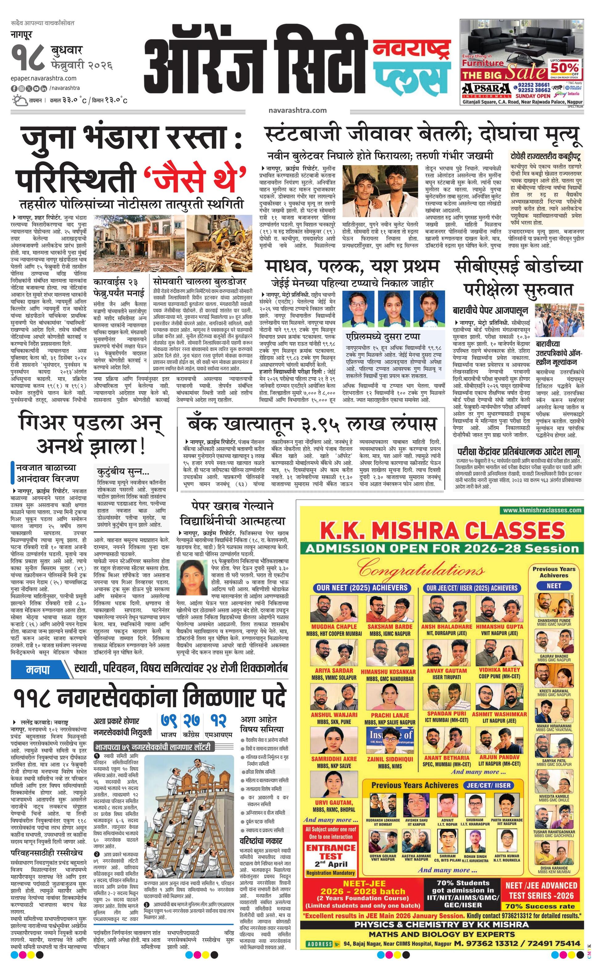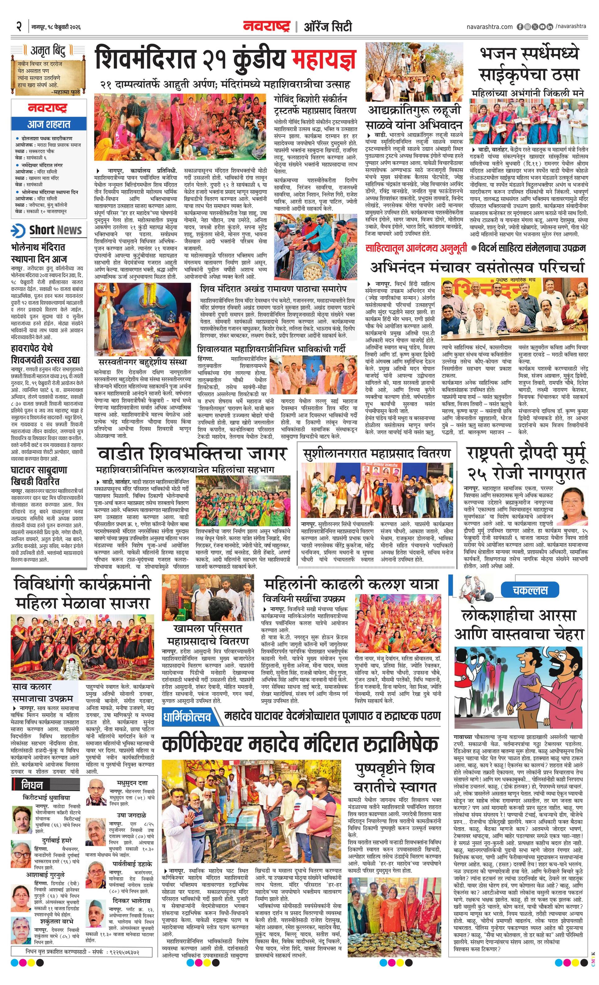 Orangecityplus E-paper | 2026-02-18 | Page 1 | Navarashtra