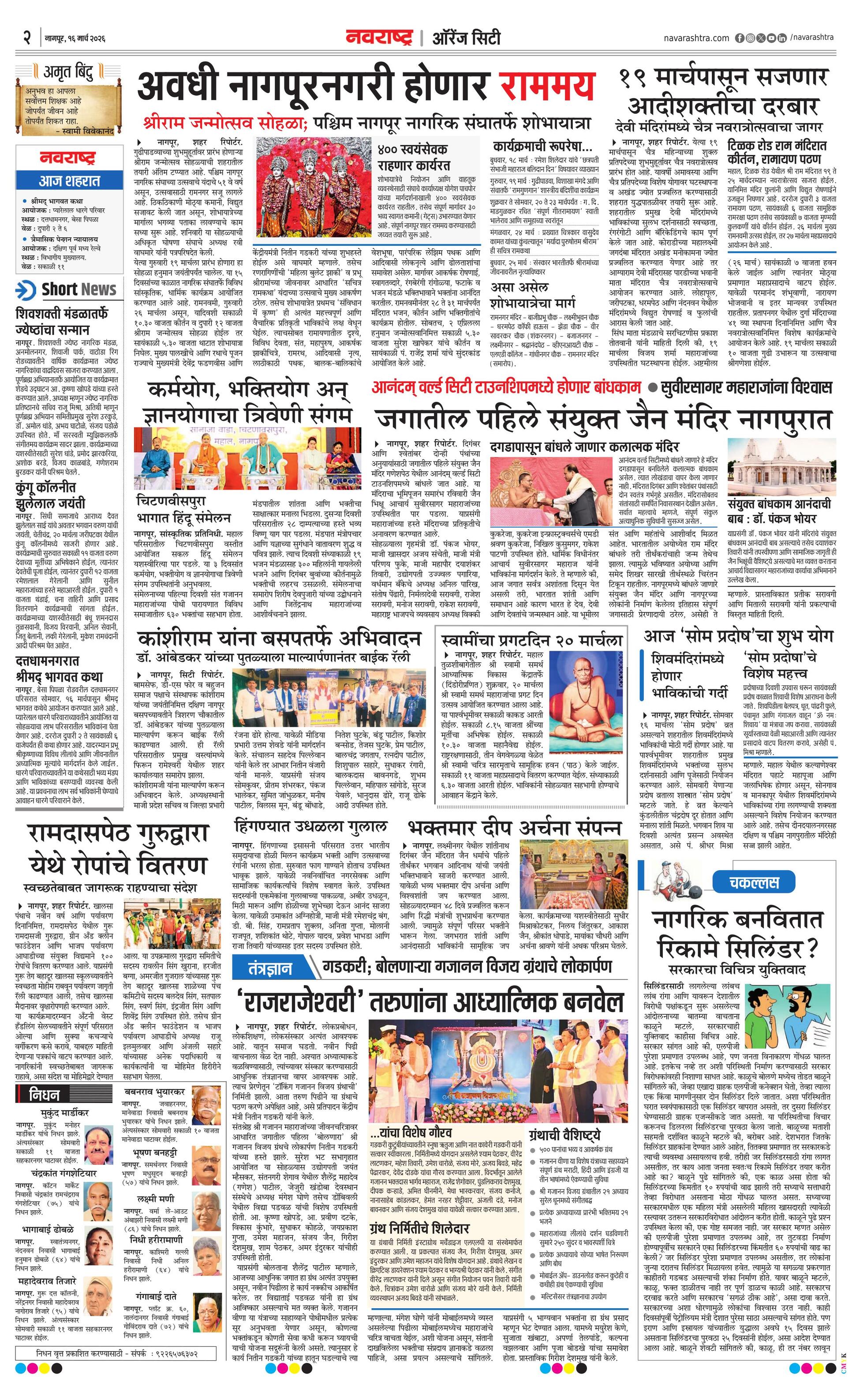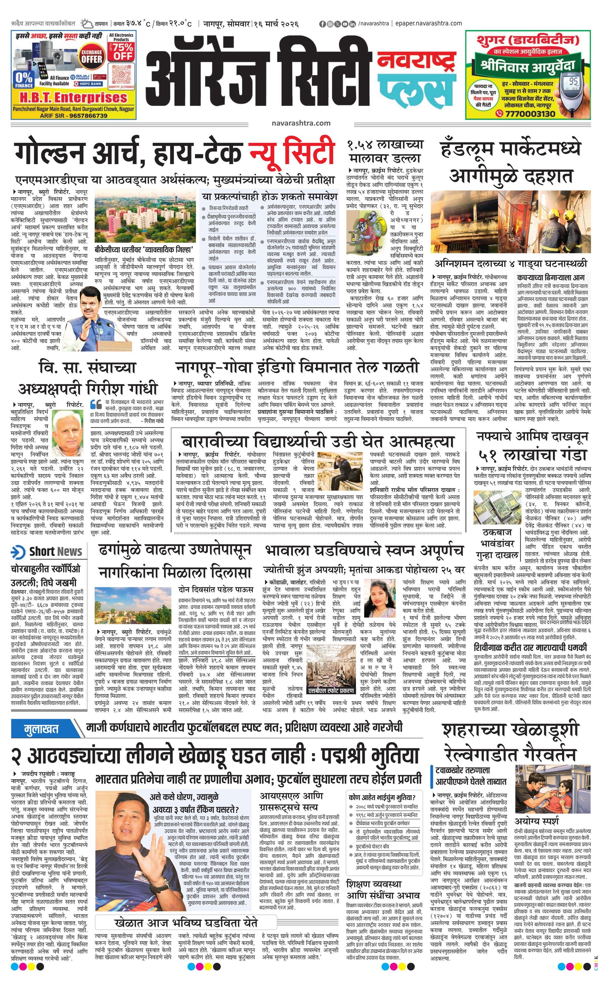 Orangecityplus E-paper | 2026-03-16 | Page 1 | Navarashtra