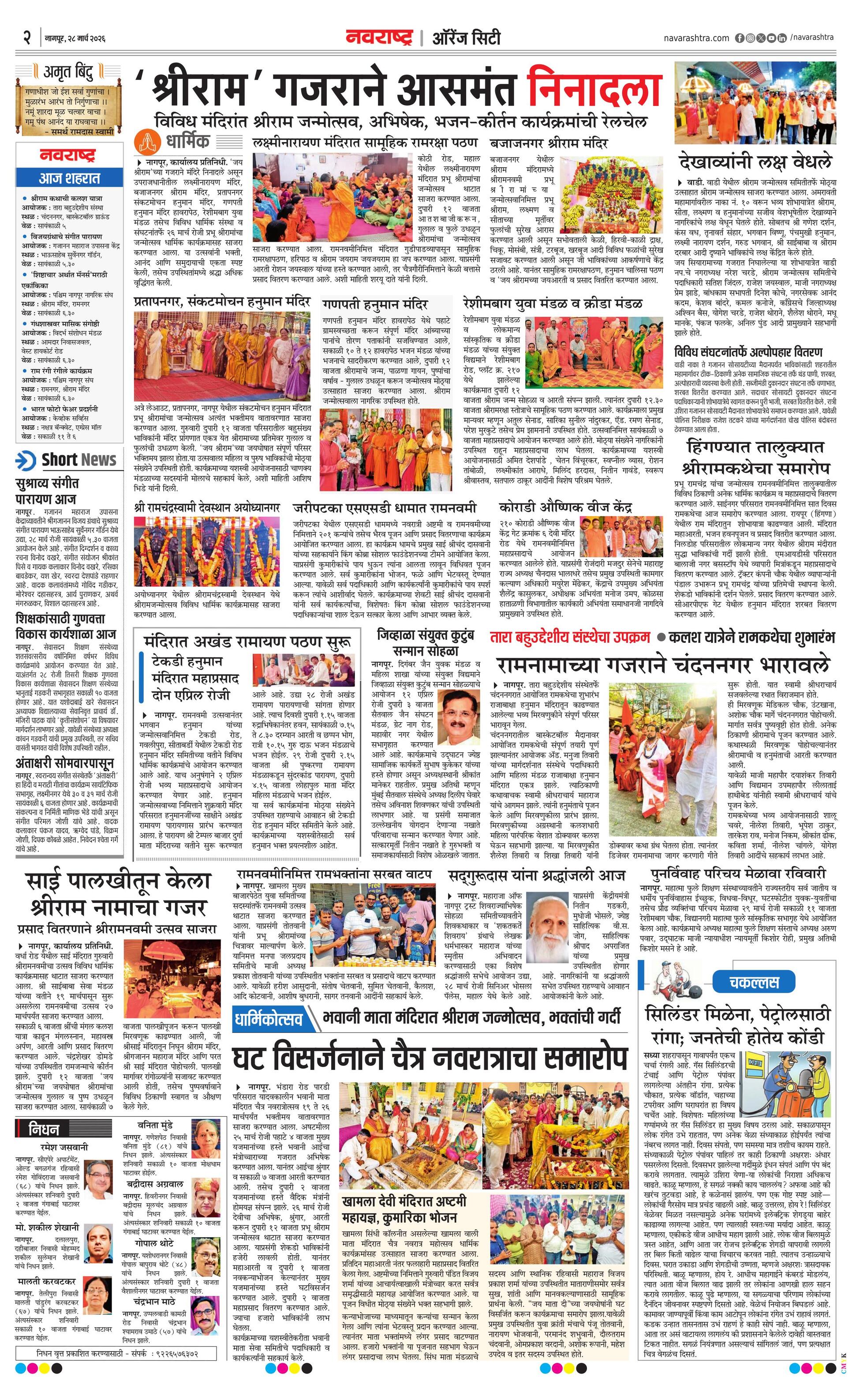 Orangecityplus E-paper | 2026-03-28 | Page 1 | Navarashtra