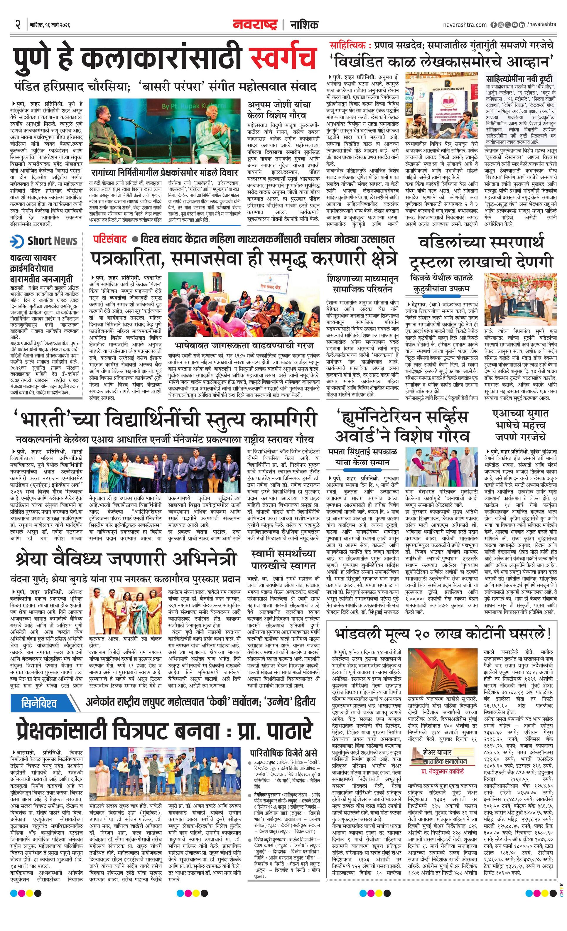 Nashikplus E-paper | 2026-03-16 | Page 1 | Navarashtra