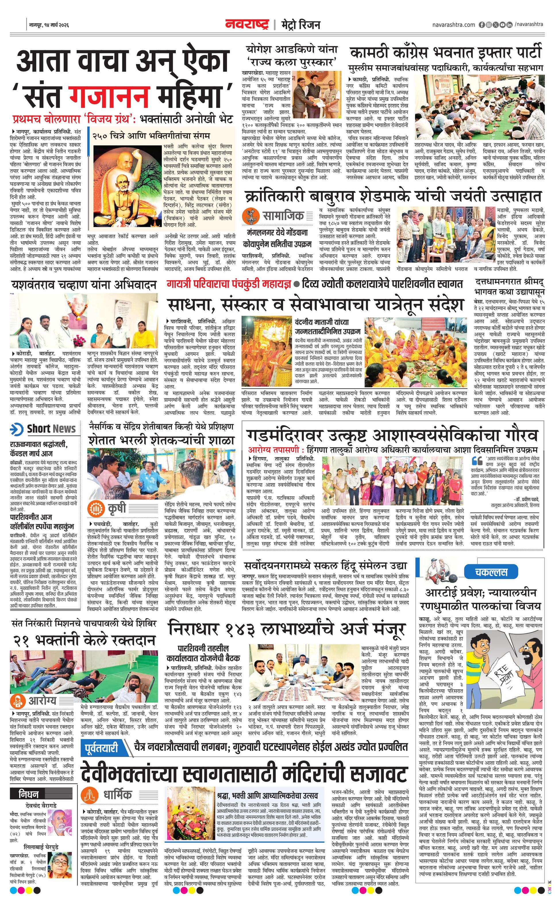 Metroplus E-paper | 2026-03-14 | Page 1 | Navarashtra