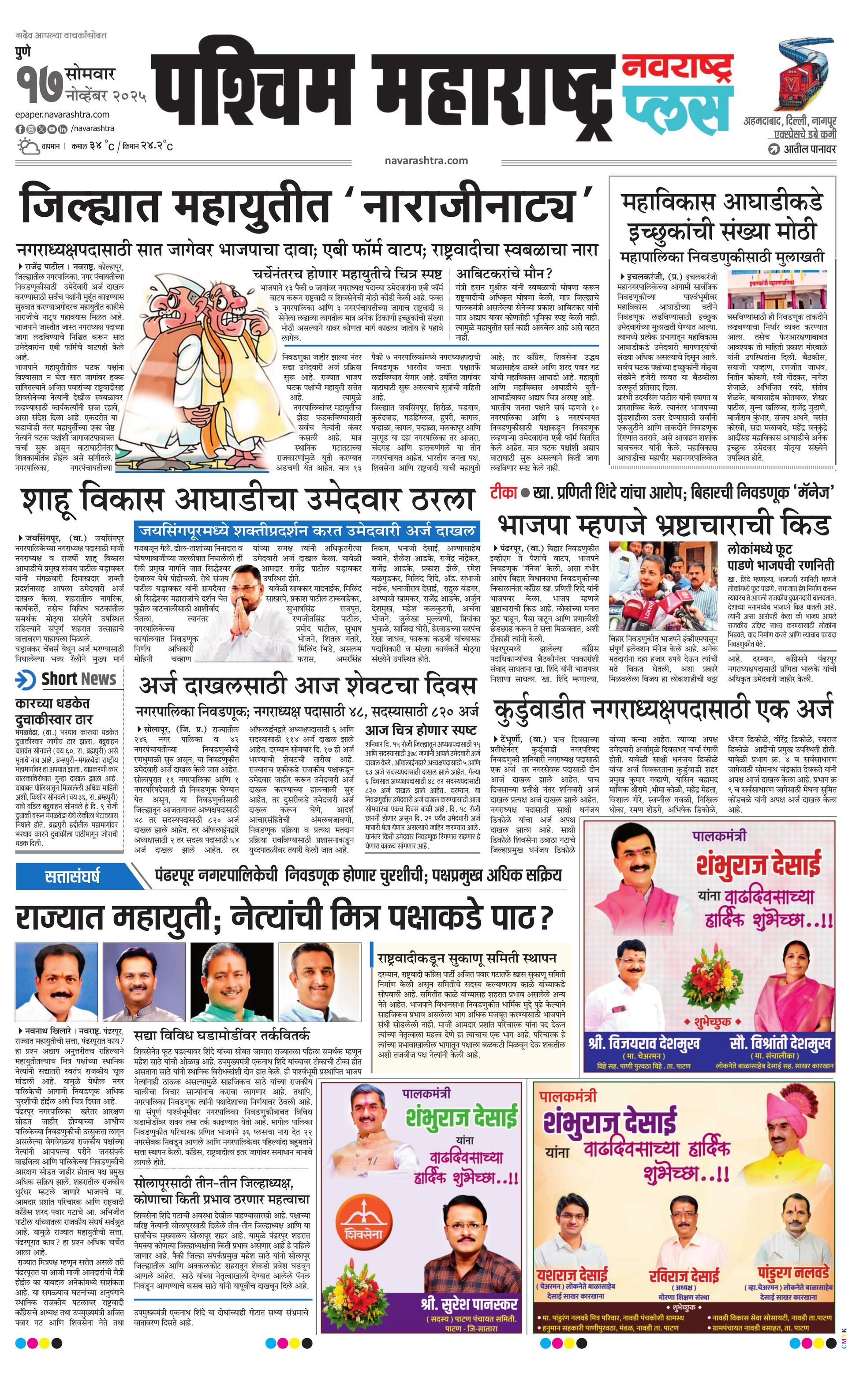 Paschimmaharashtraplus E-paper | 2025-11-17 | Page 1 | Navarashtra