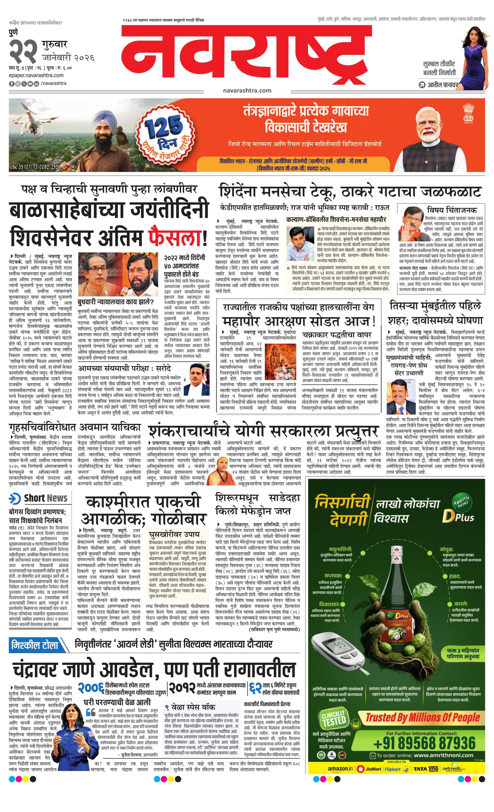 Pune E-paper | 2026-01-22 | Page 1 | Navarashtra