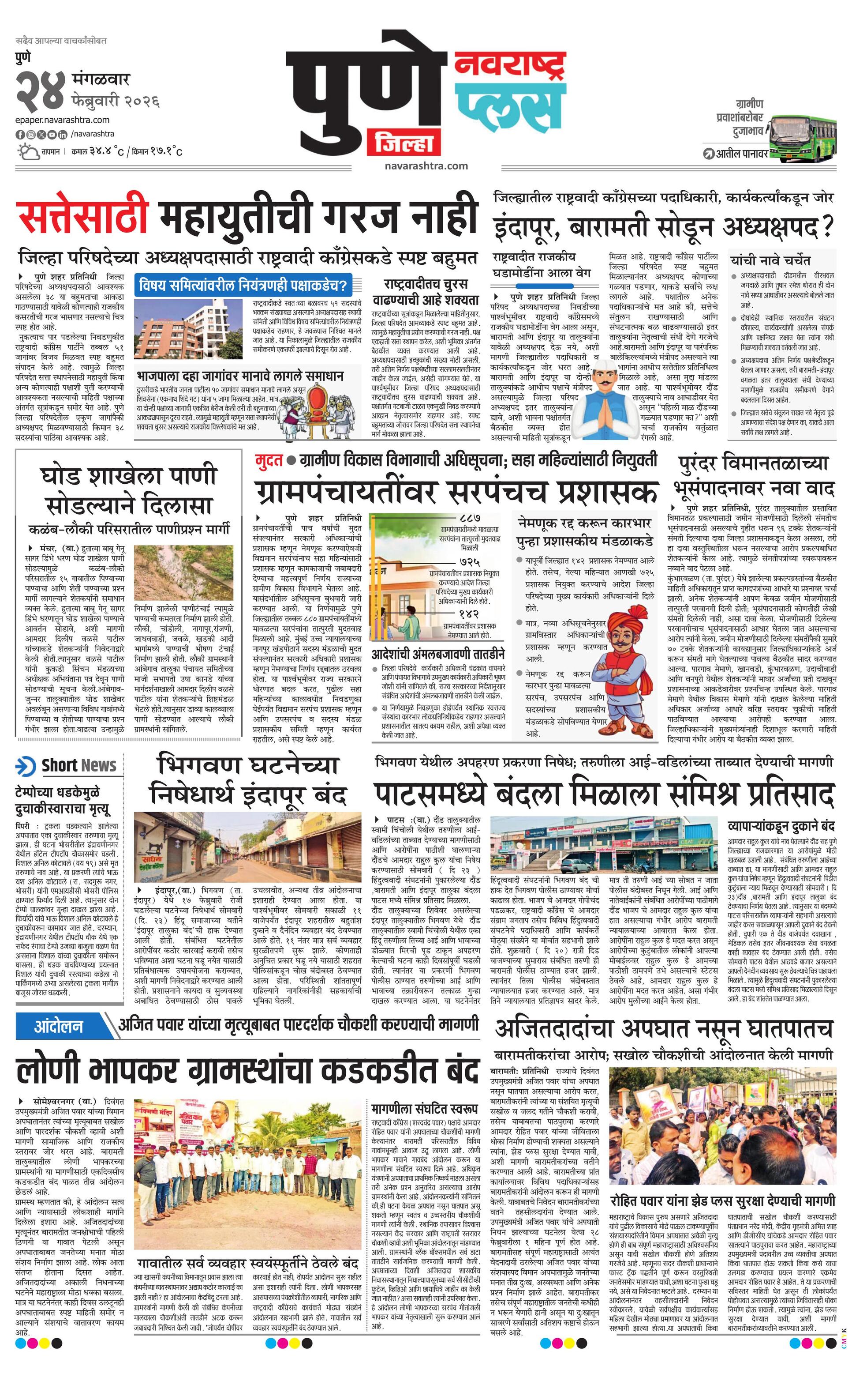 Punegraminplus E-paper | 2026-02-24 | Page 1 | Navarashtra