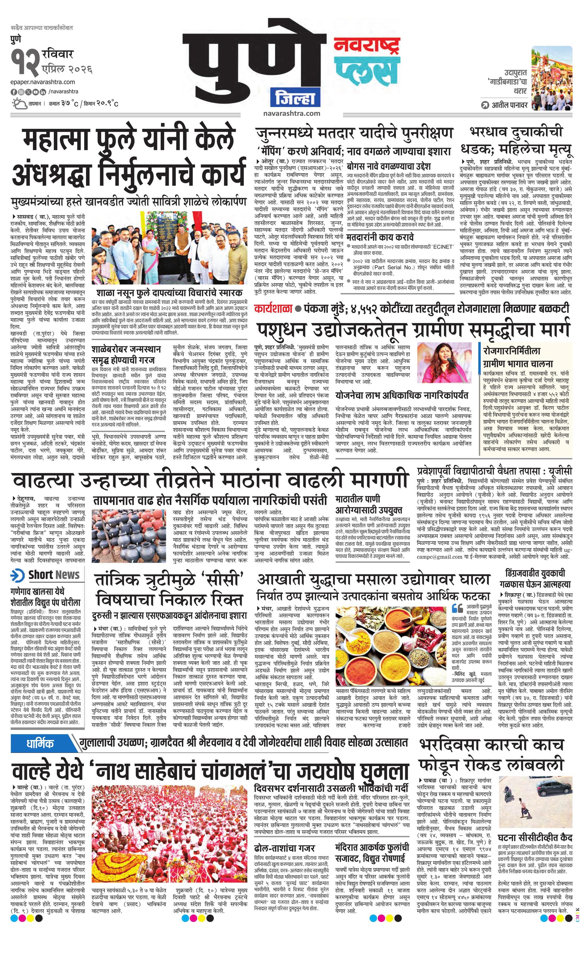 Punegraminplus E-paper | 2026-04-12 | Page 1 | Navarashtra