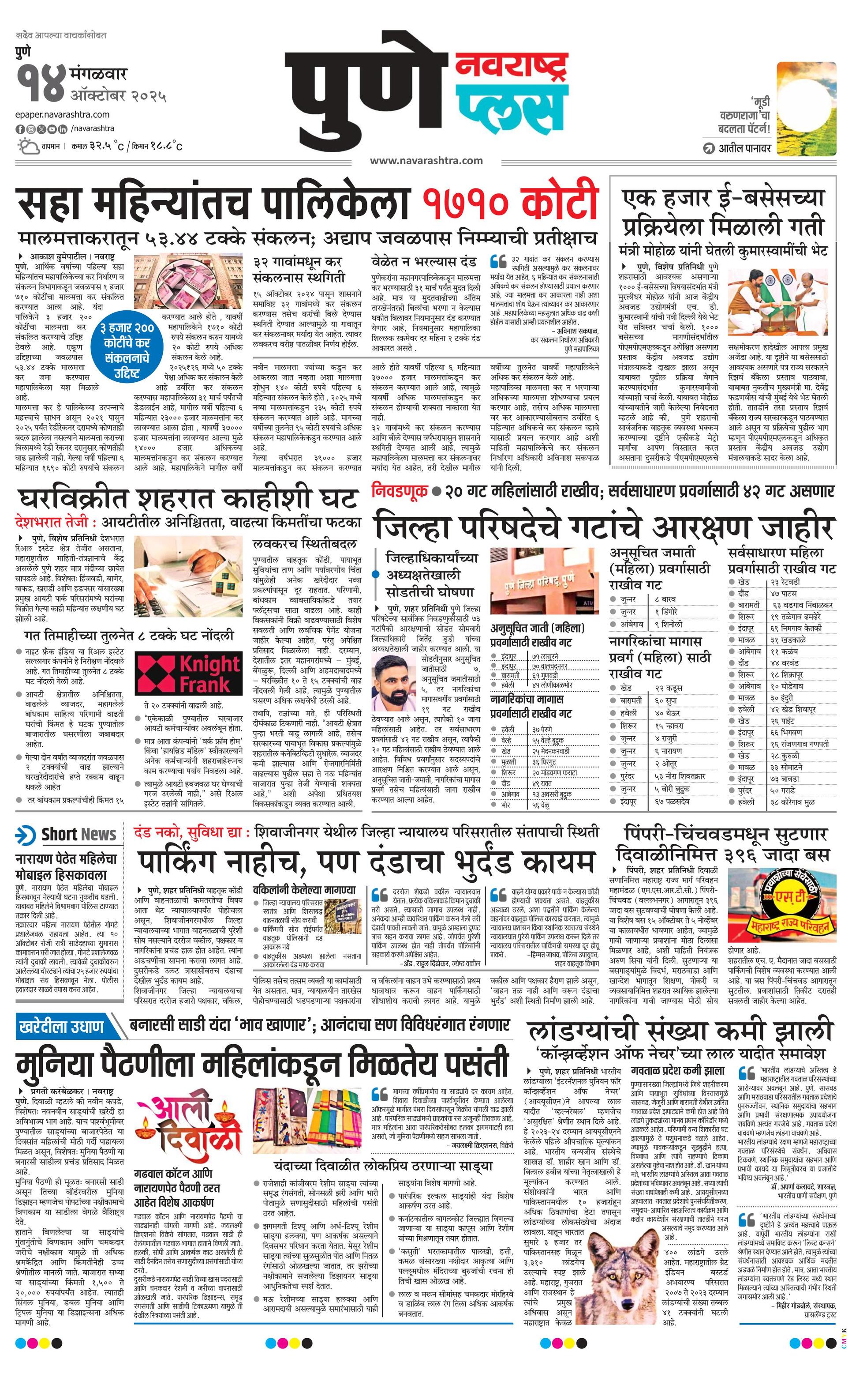 Puneplus E-paper | 2025-10-14 | Page 1 | Navarashtra