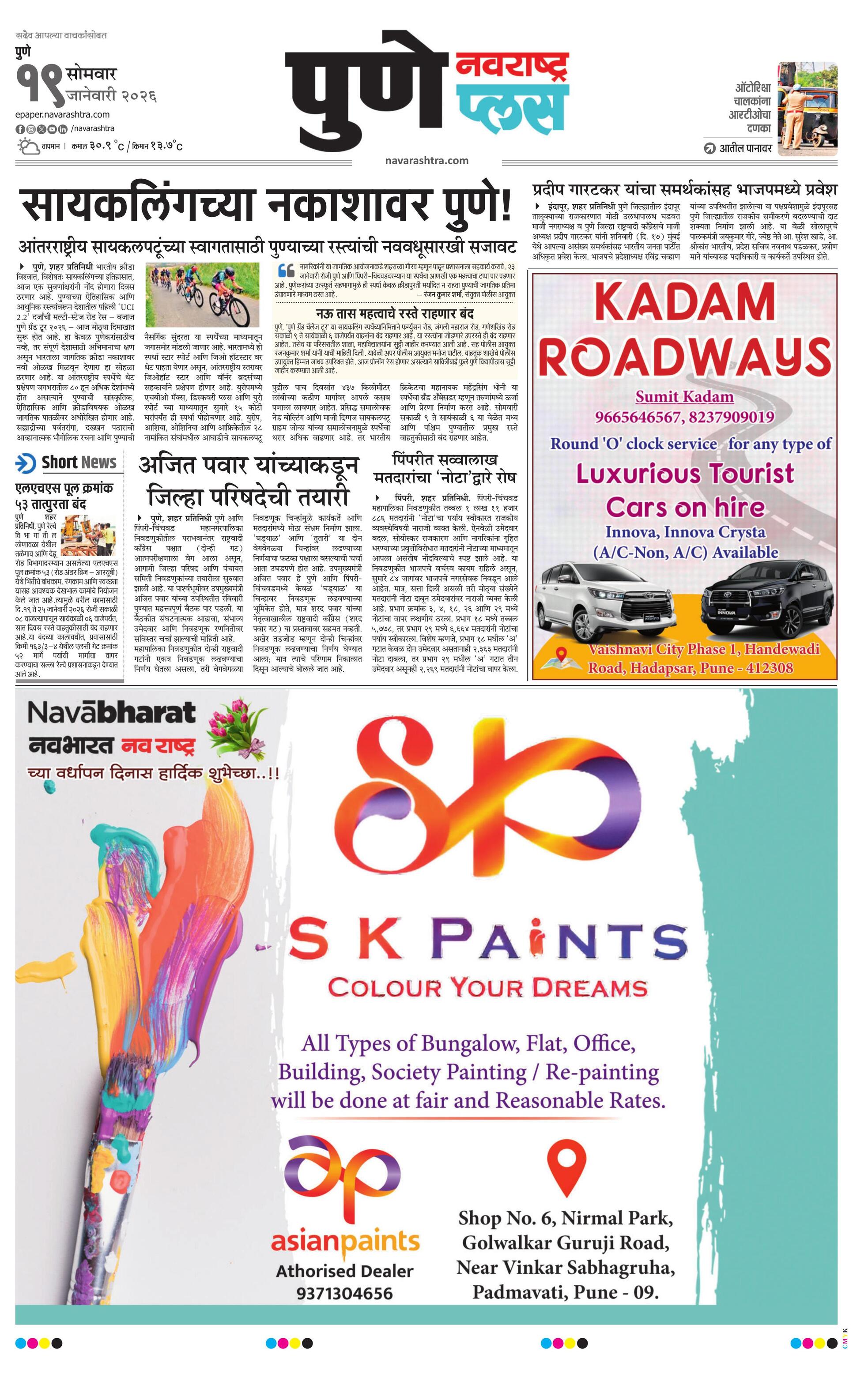 Puneplus E-paper | 2026-01-19 | Page 1 | Navarashtra