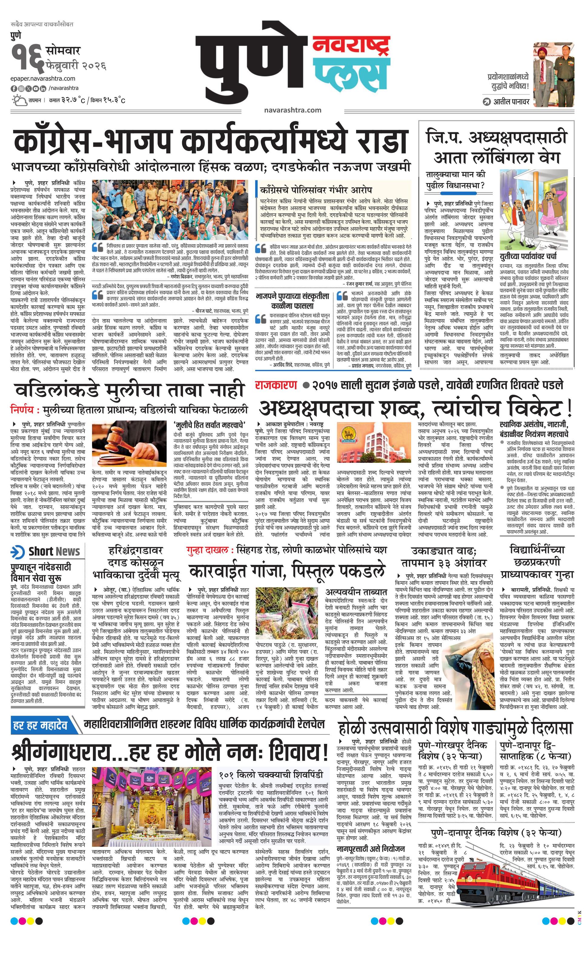 Puneplus E-paper | 2026-02-16 | Page 1 | Navarashtra