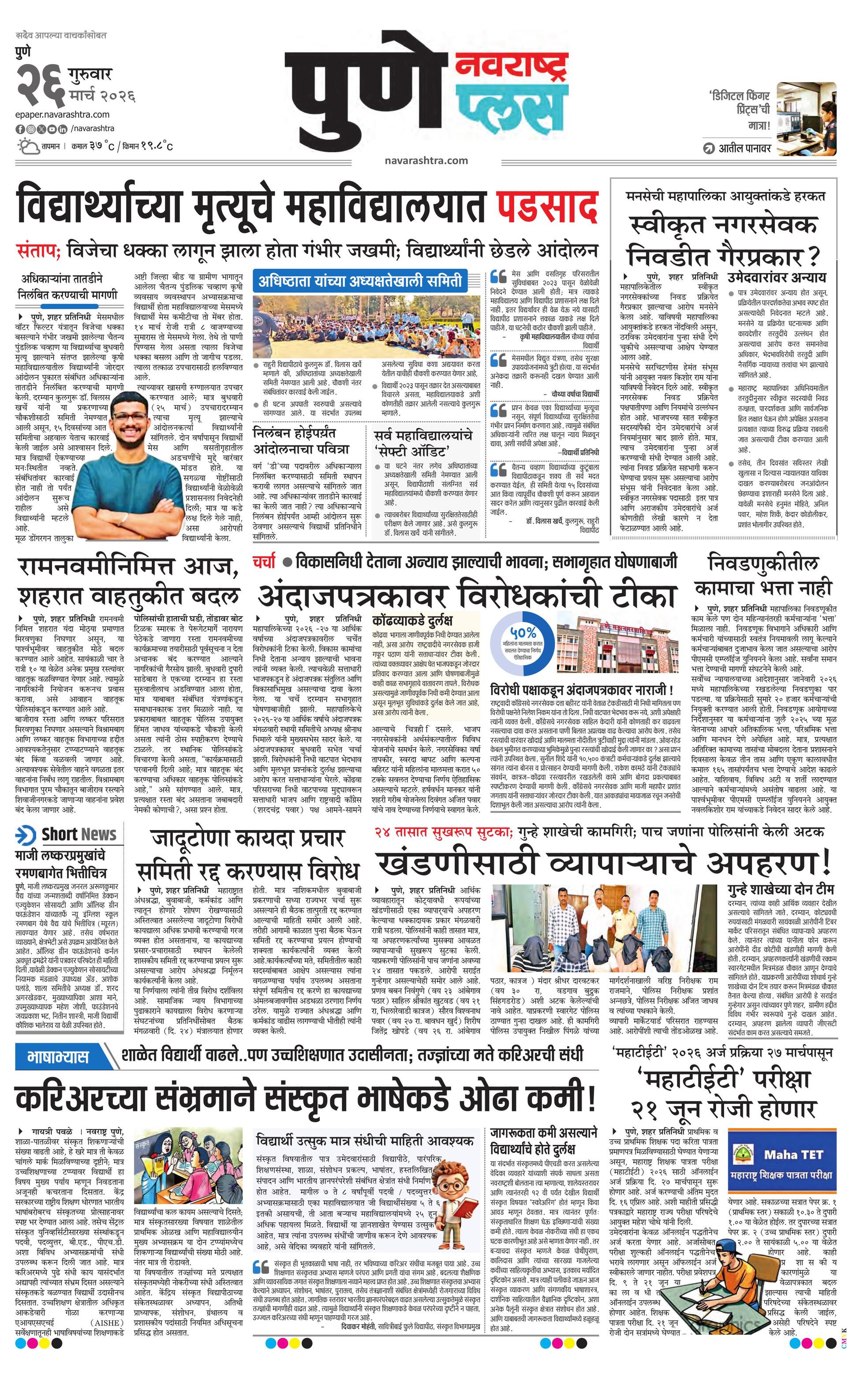 Puneplus E-paper | 2026-03-26 | Page 1 | Navarashtra