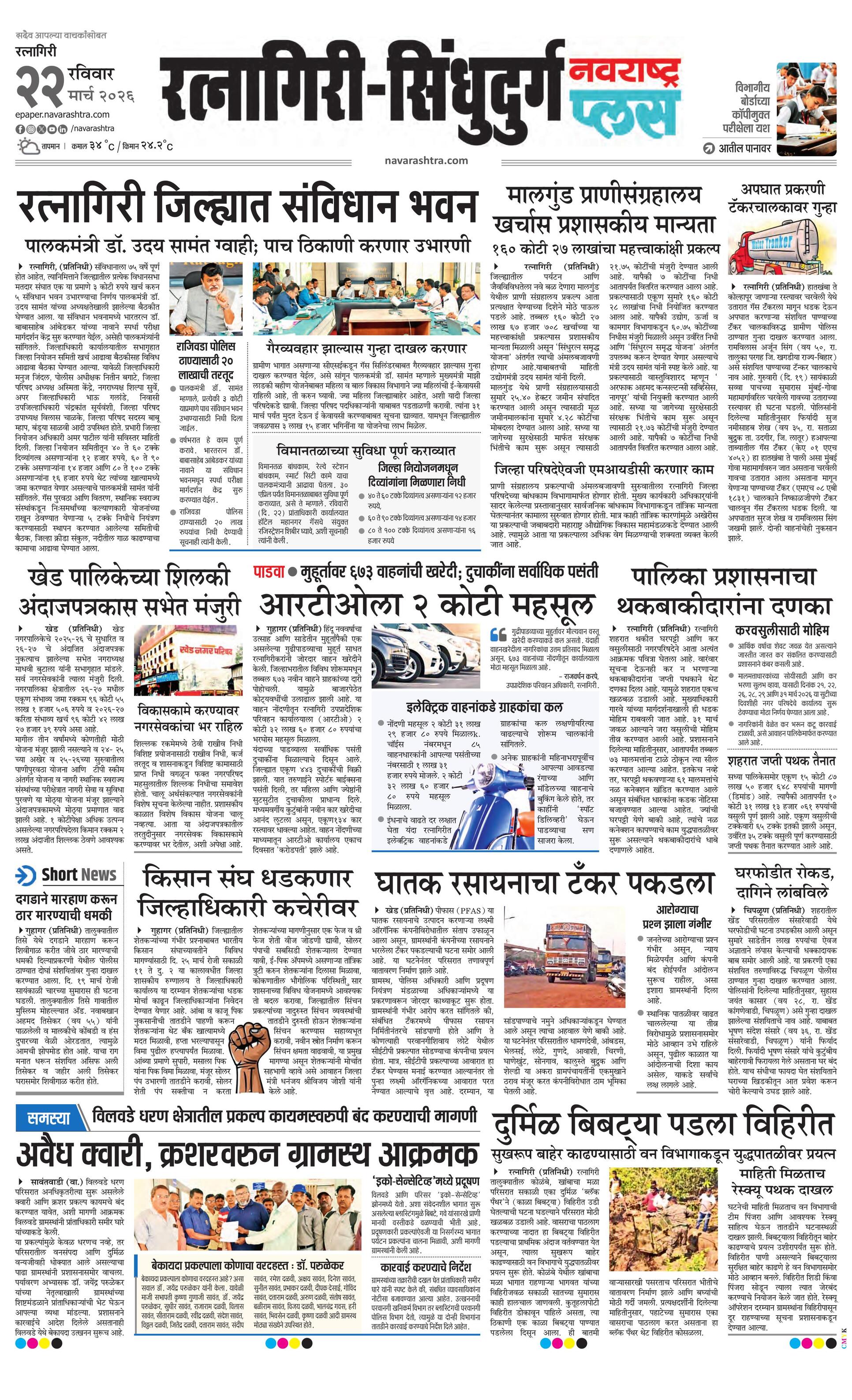 Ratnagiriplus E-paper | 2026-03-22 | Page 1 | Navarashtra