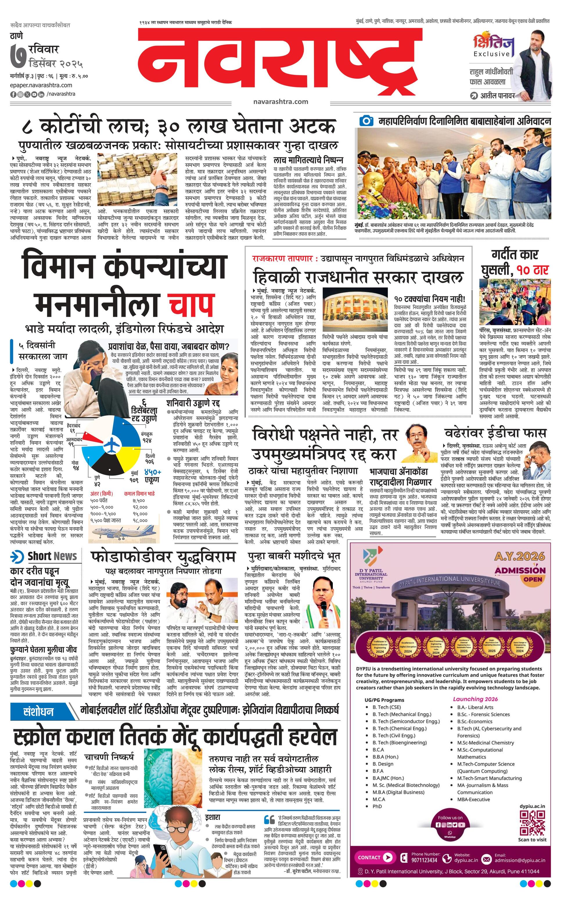 Thanemain E-paper | 2025-12-07 | Page 1 | Navarashtra