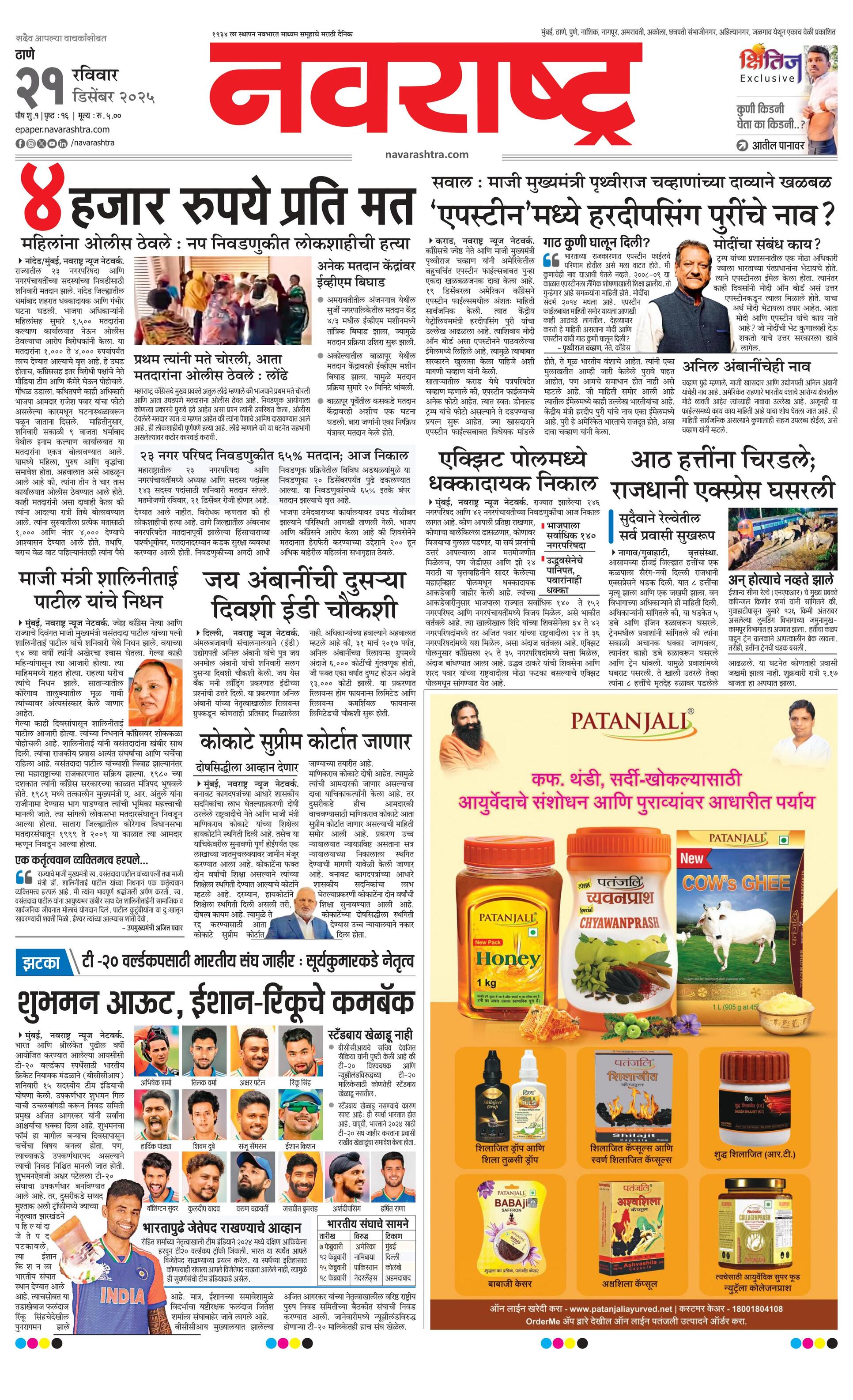 Thanemain E-paper | 2025-12-21 | Page 1 | Navarashtra