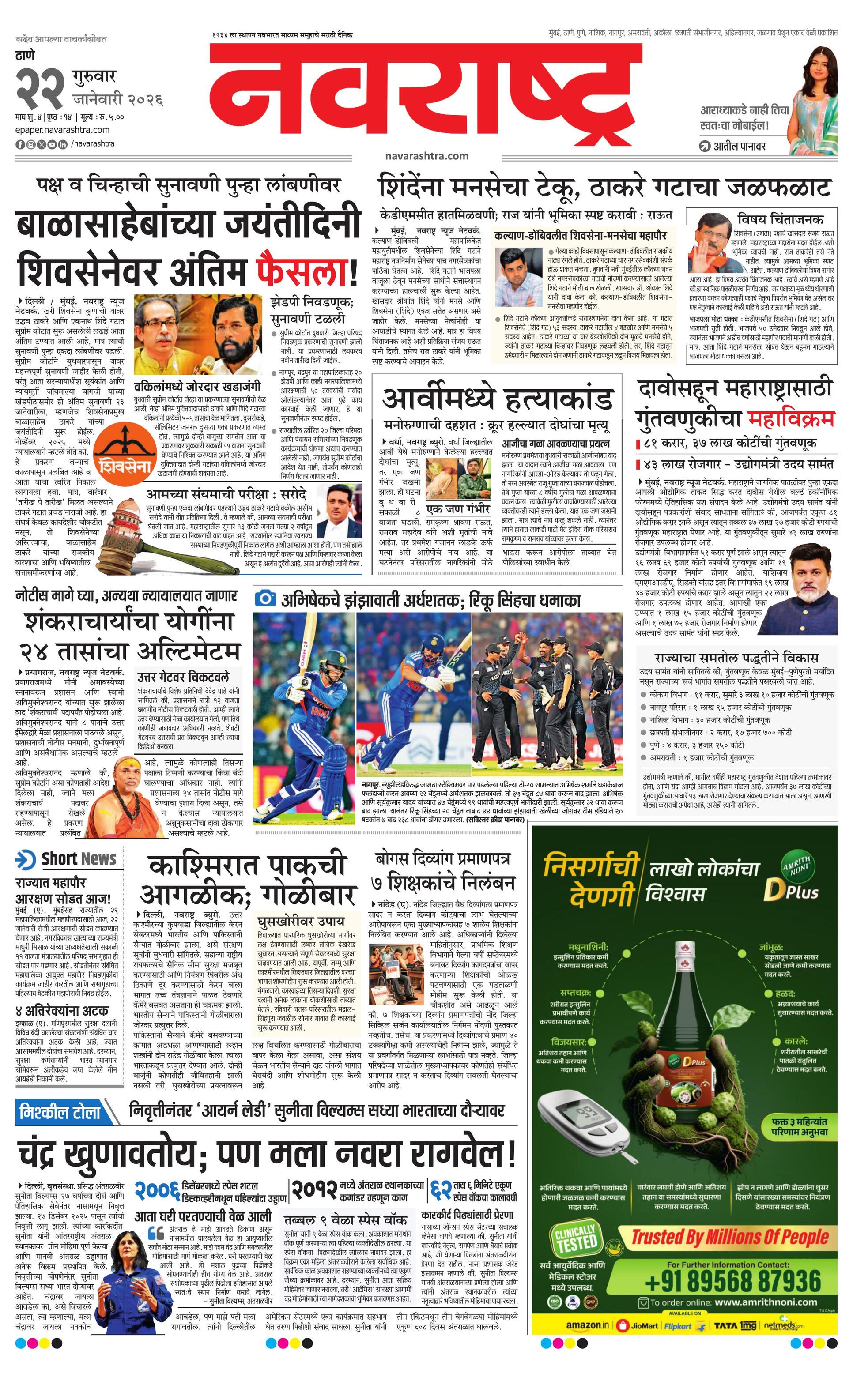 Thanemain E-paper | 2026-01-22 | Page 1 | Navarashtra