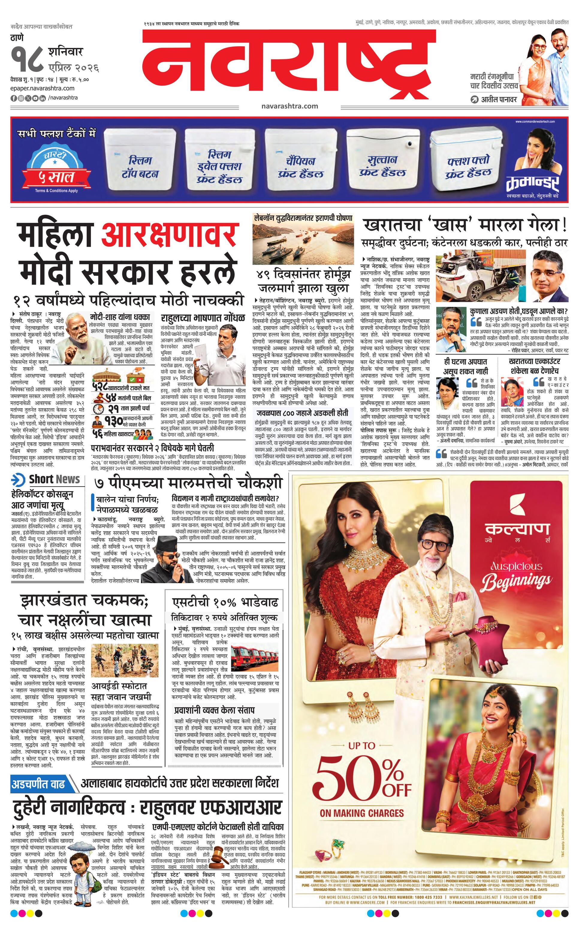 Thanemain E-paper | 2026-04-18 | Page 1 | Navarashtra