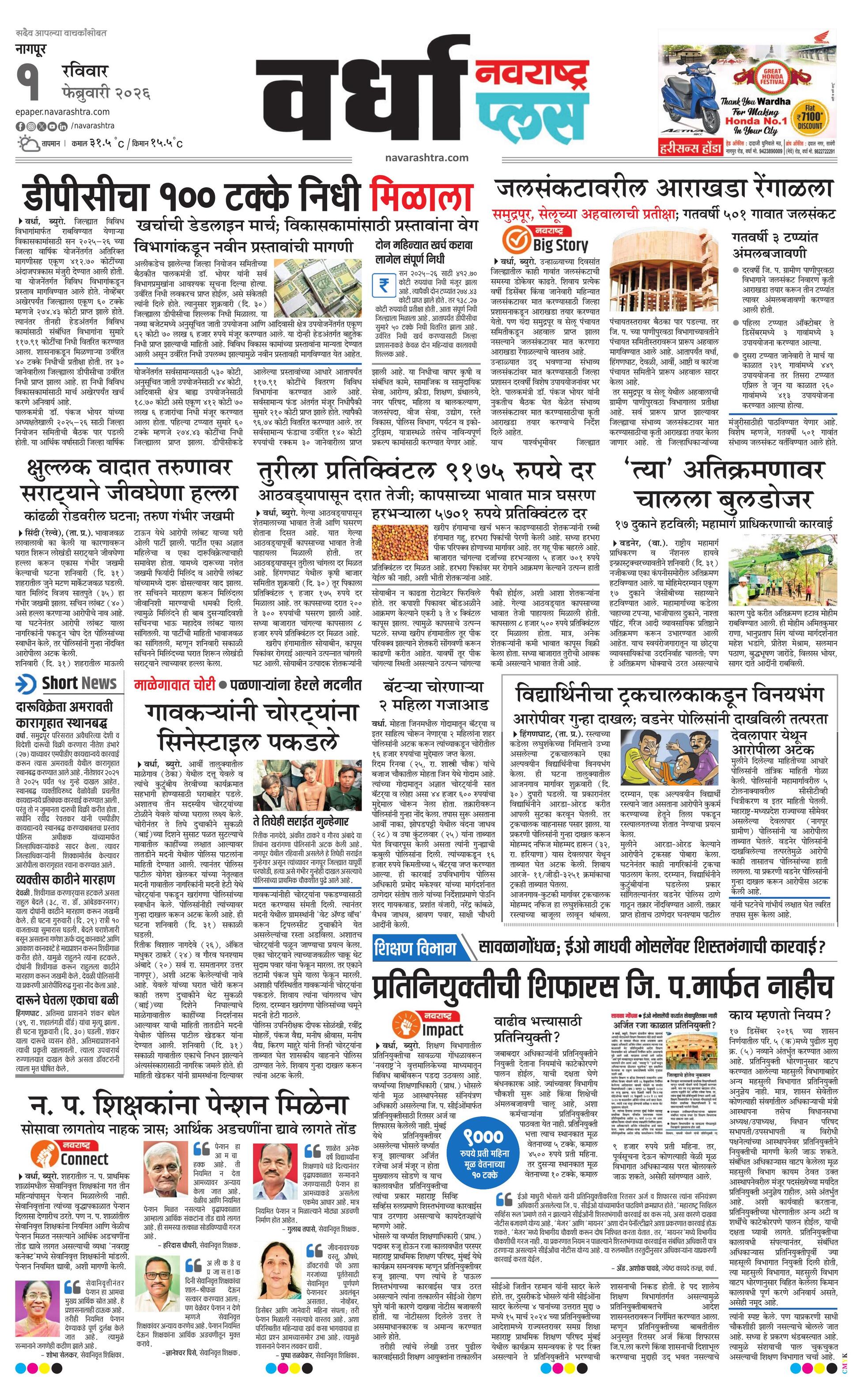Wardhaplus E-paper | 2026-02-01 | Page 1 | Navarashtra