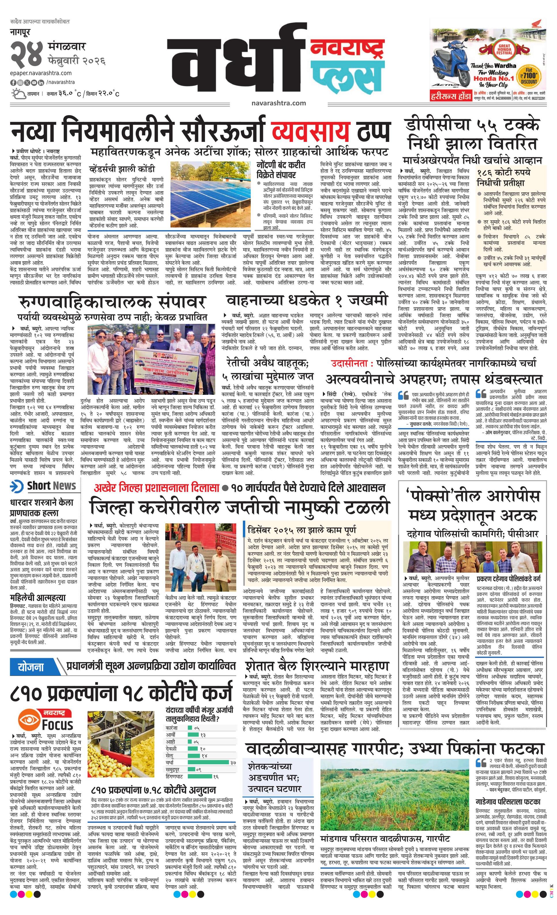 Wardhaplus E-paper | 2026-02-24 | Page 1 | Navarashtra